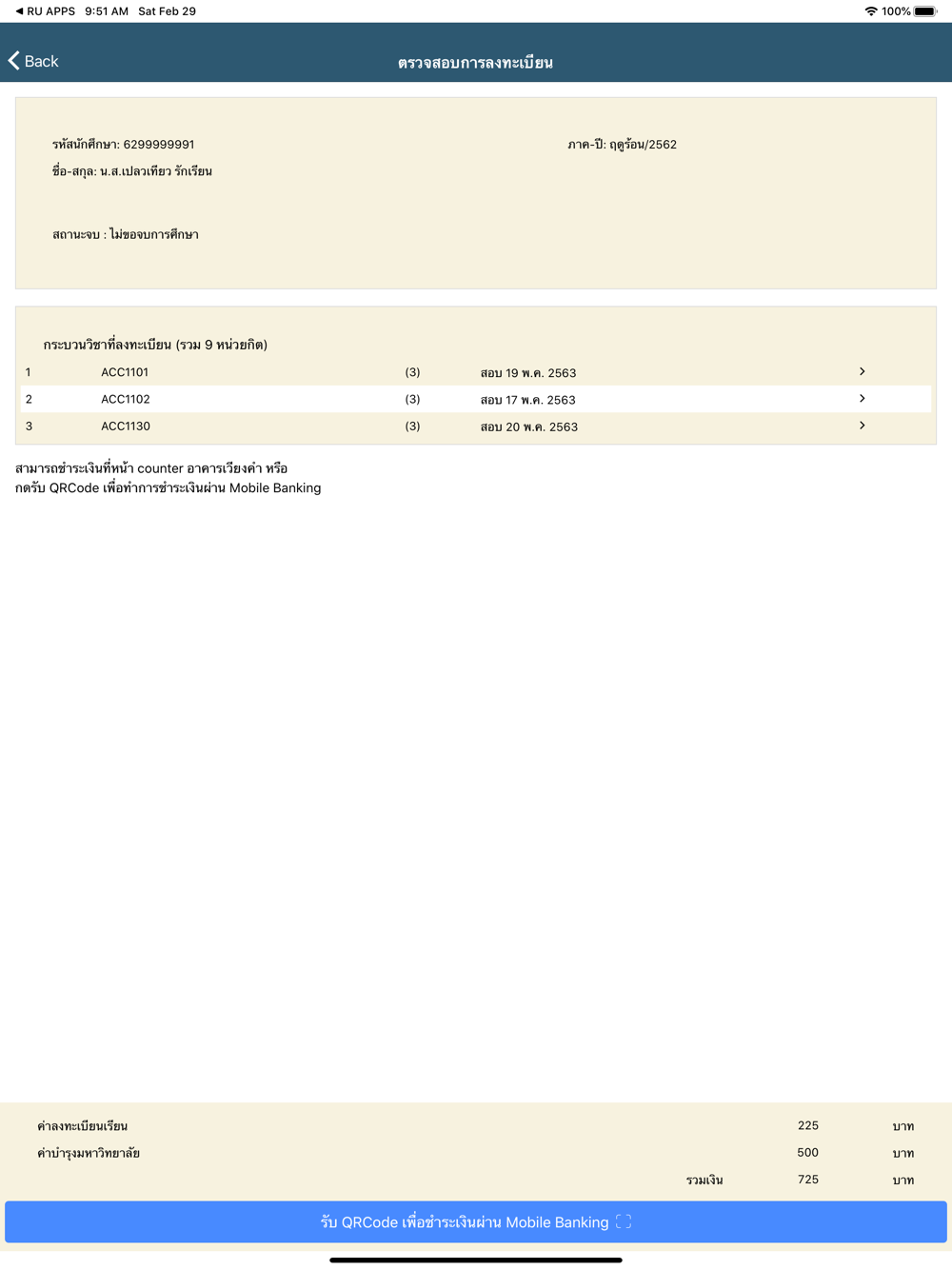 RU REGIS แอปสำหรับการลงทะเบียนเรียนของมหาวิทยาลัยรามคำแหง