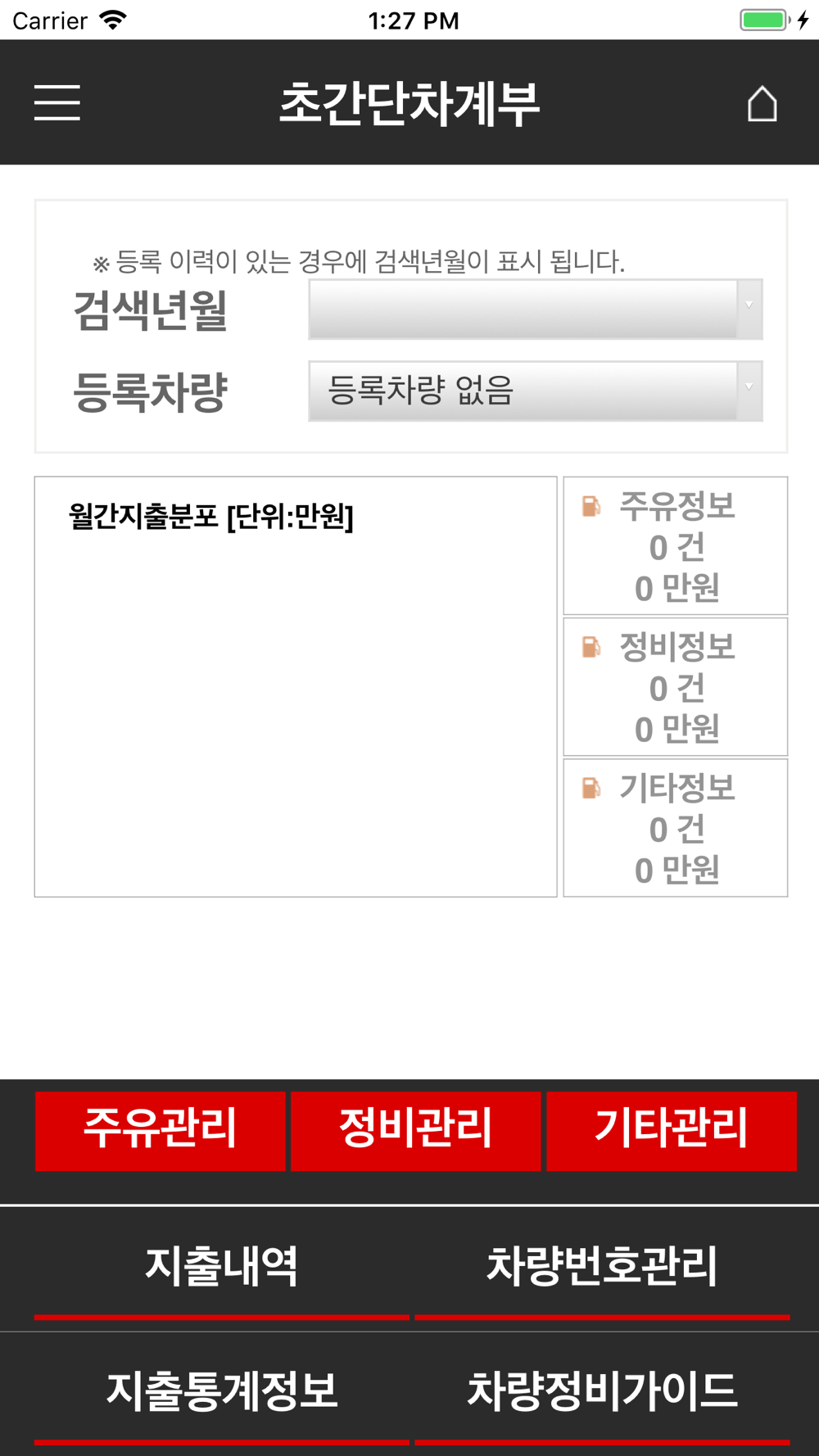 6. 차계부는 차량운행하면서 차량으로 소비하는 비용을 입력, 통계 데이터를 확인 할수 있다