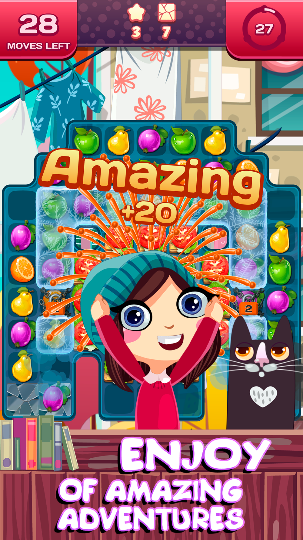 - Swap, match and crush fruits in hundreds of fun and challenging match-3 puzzle levels;