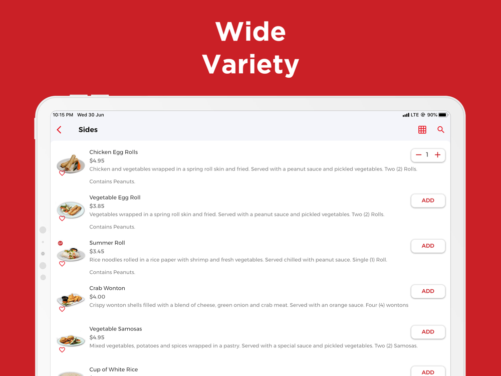Mobile ordering app allows customers to order fresh made to order pan-asian food for pickup. Customer can even use the mobile app for faster dine-in experiences.