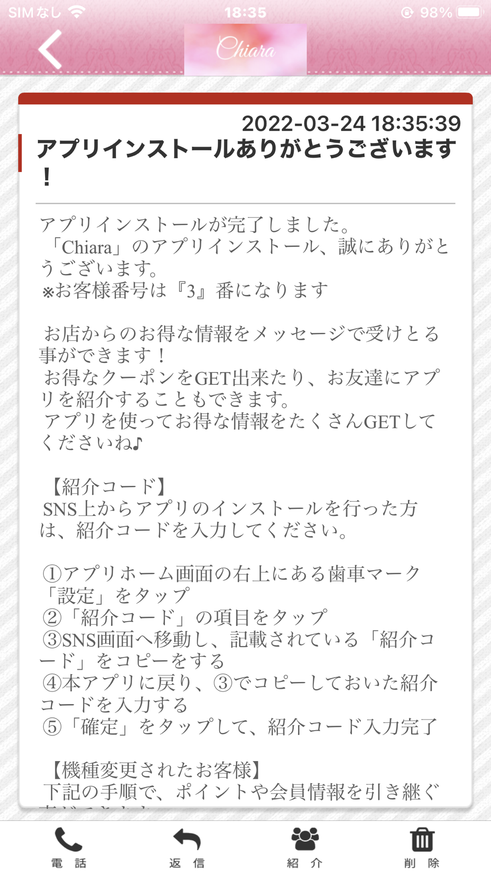 ChiaraのアプリをSNSを通じてお友達に紹介する事ができます。