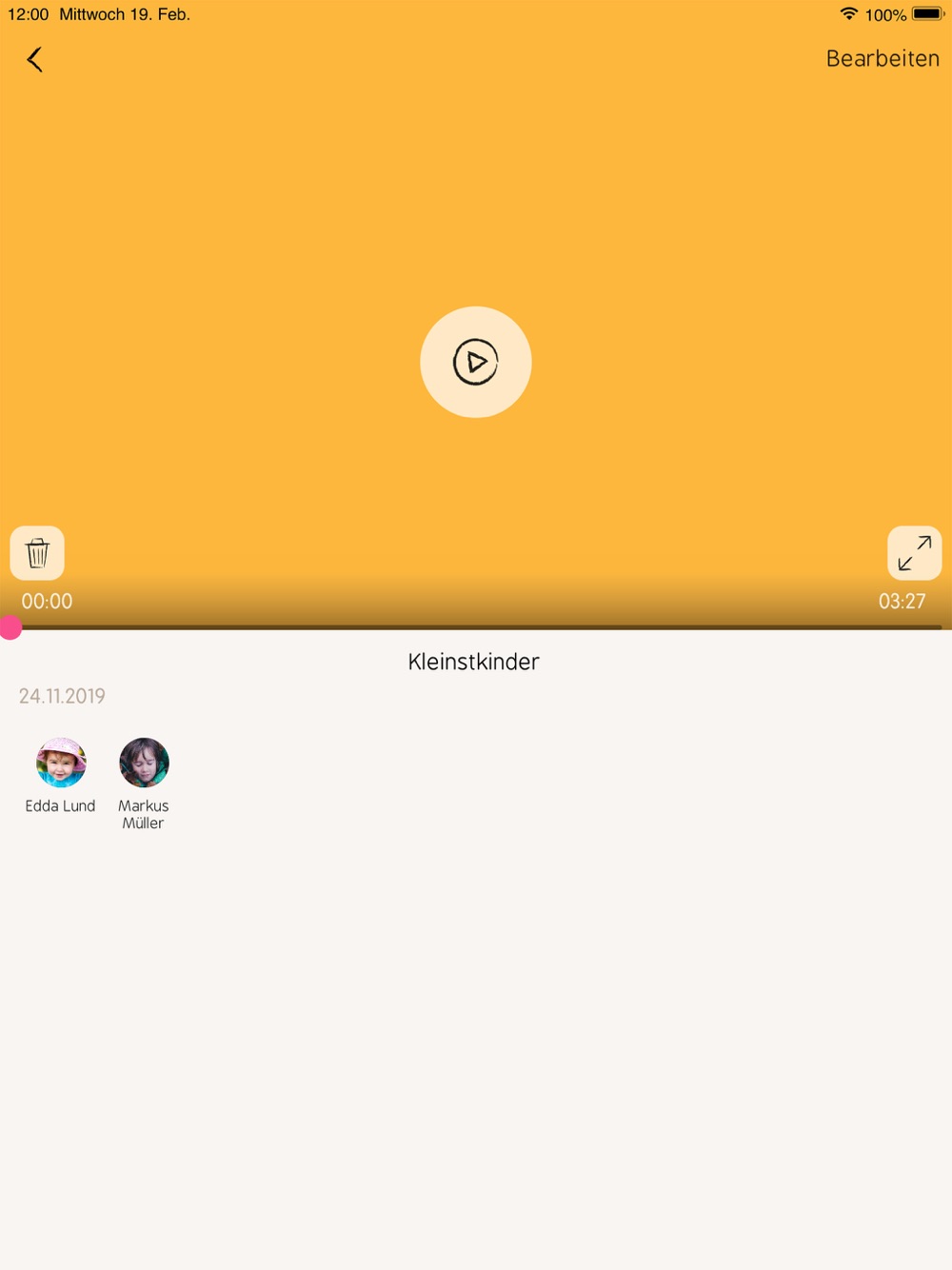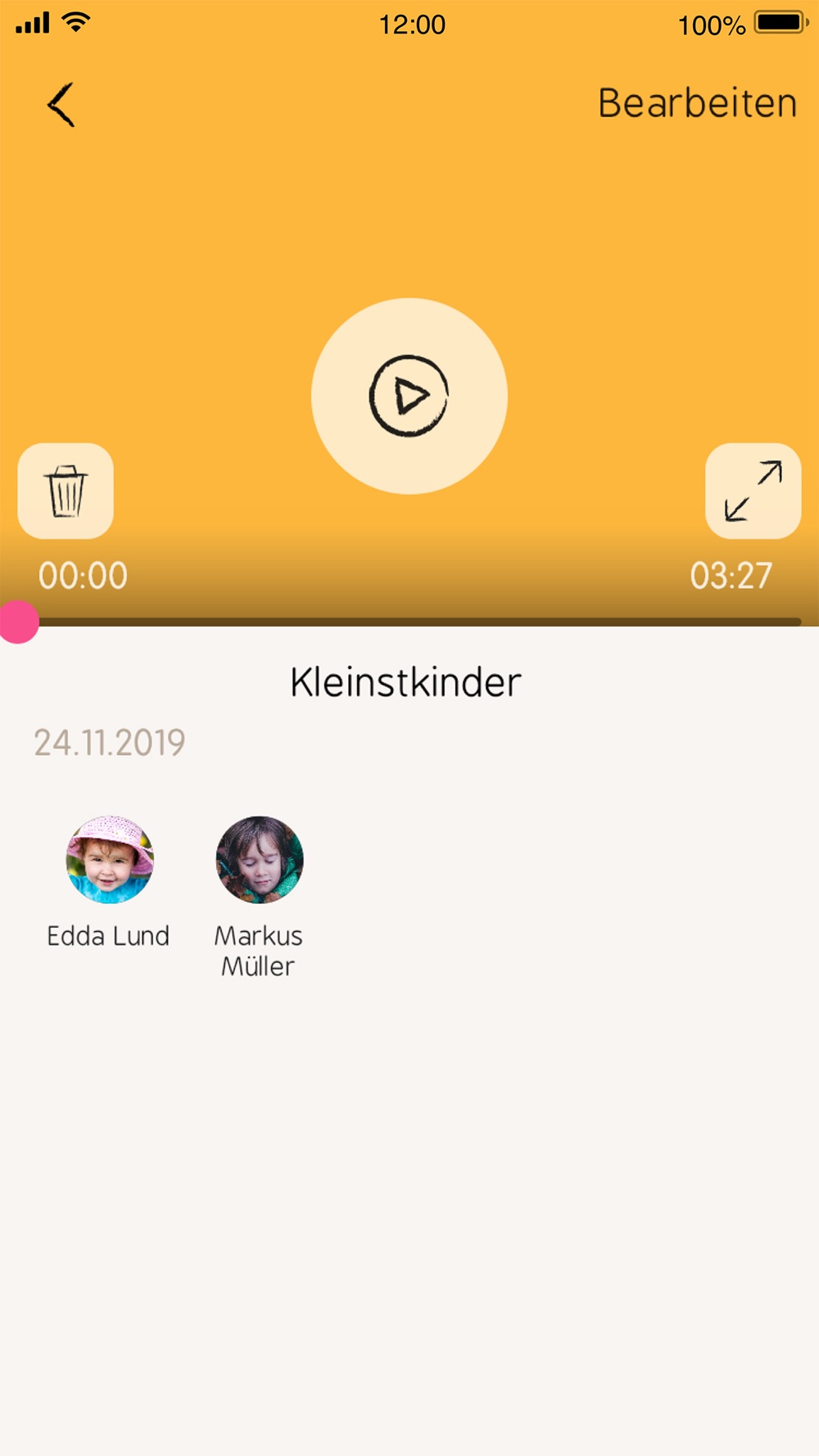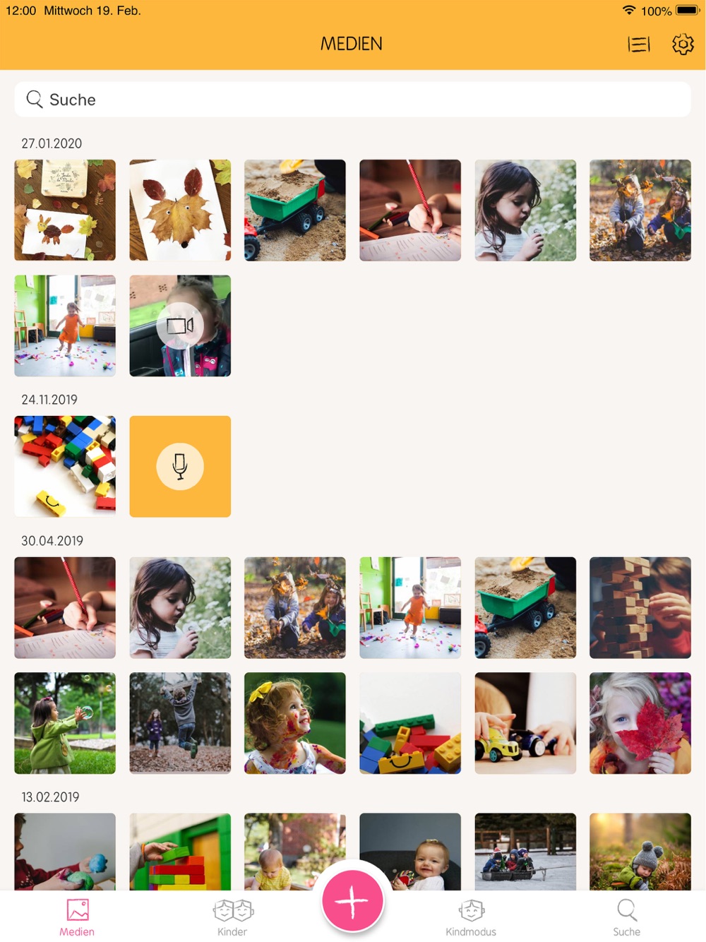 Eine integrierte Suchfunktion ermöglicht die Filterung nach Stichworten, Zeiträumen, Kindern und Gruppen – für eine jederzeit übersichtliche Ansicht.