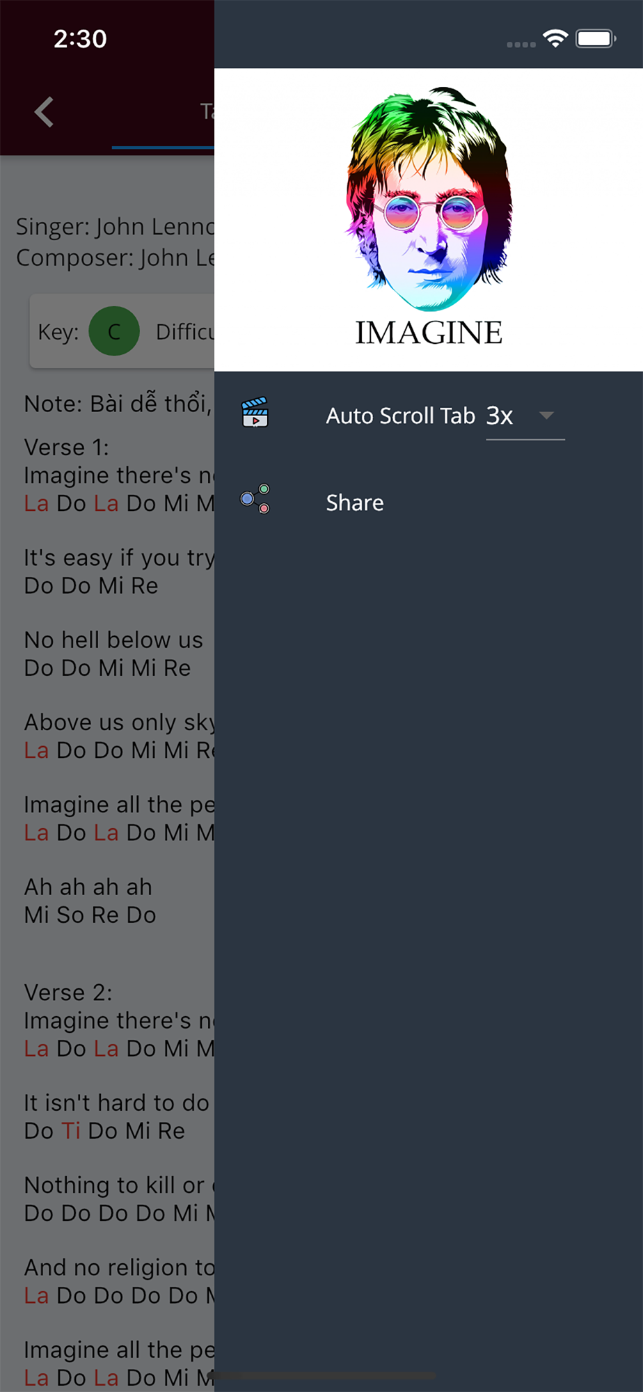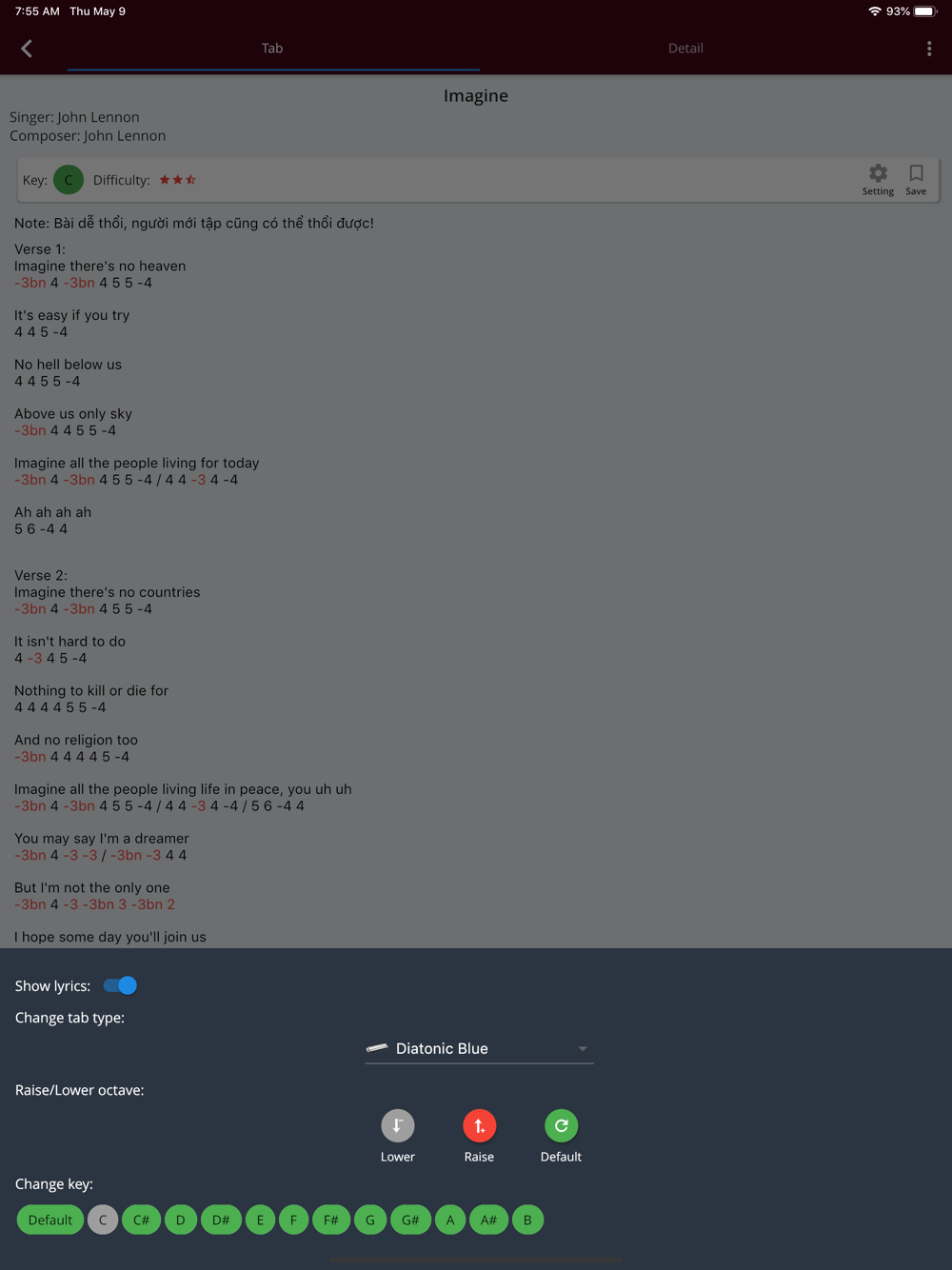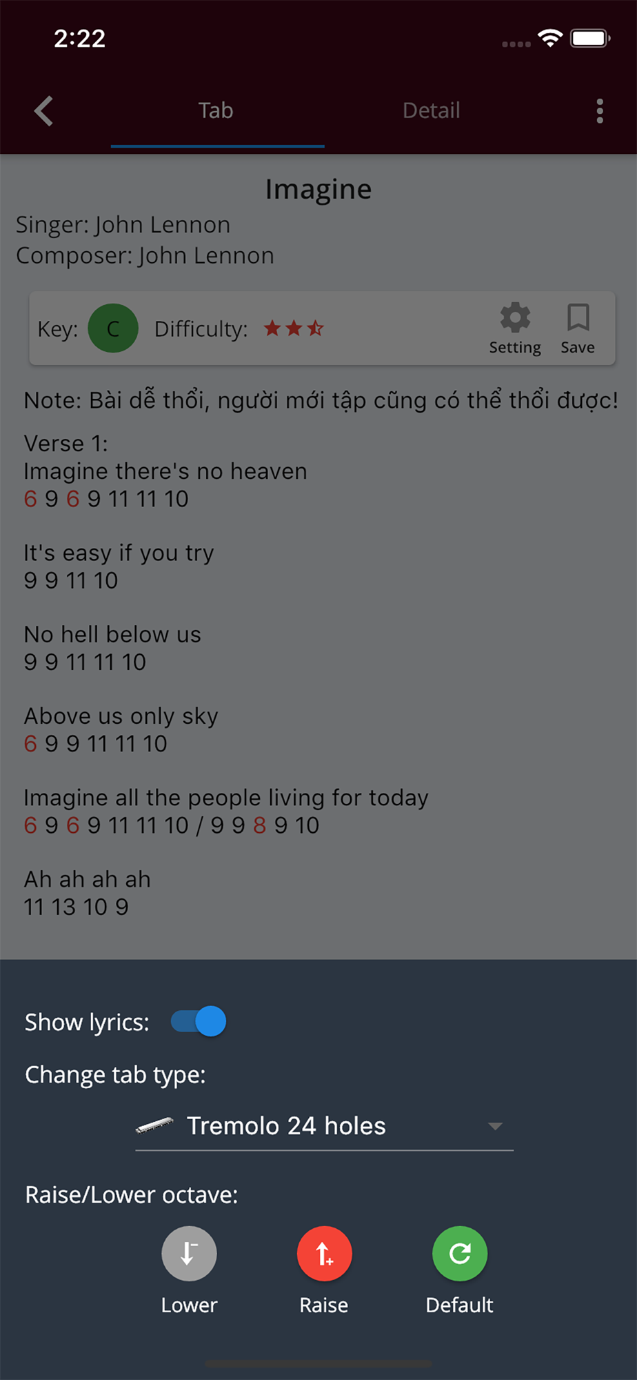 - Convert tab by types of trumpet, increase/reduce interval or change Tone.