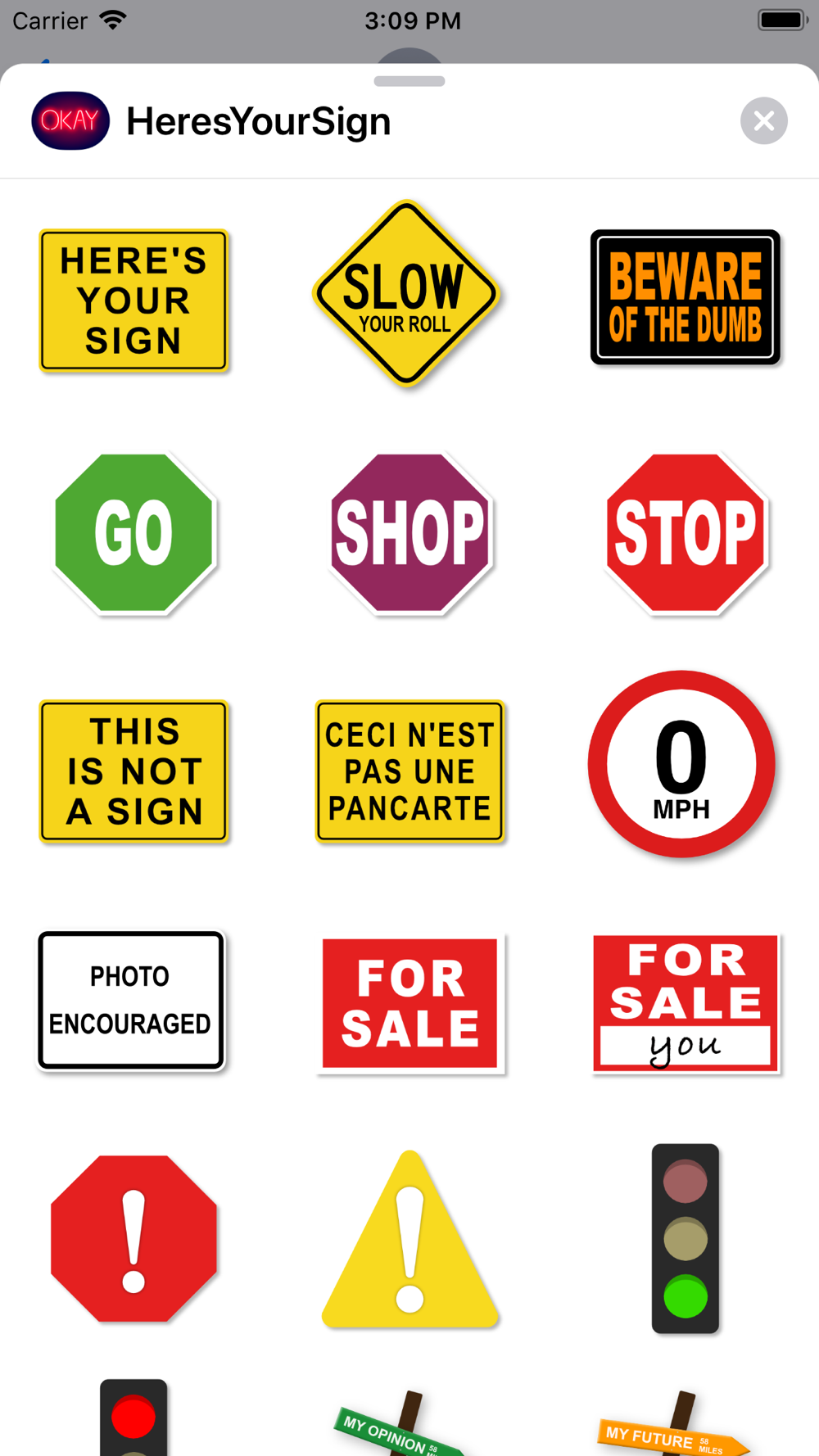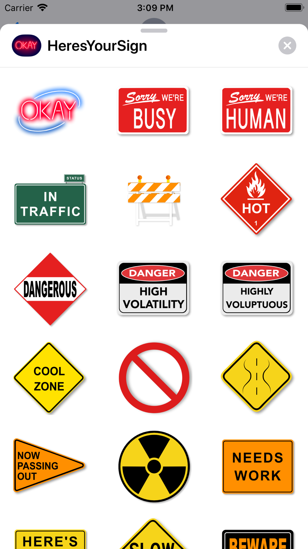 From the creators of Lack of Sleep and Resulting Cranky Mood Swings, comes a brand new iMessage Sticker Pack filled with traffic sign and placard puns and pleasures.