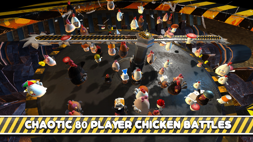 80 chicken players compete to be the last standing on an unstable disk above a gruesome grinder. The last player on de disk won’t be turned into a chicken nugget. Become #1 on the leaderboard, and you'll be rewarded with a golden crown.