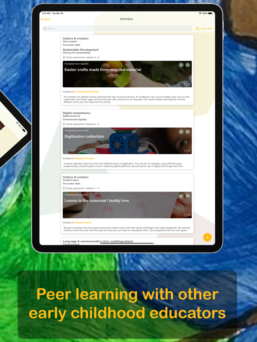 edChild is a treasure trove for educators, filled with thousands of learning situations / activities in all areas of child development 1 – 6 years old created by other educators. Get inspired by how other educators work with, for example, digital competence or sustainable development. In edChild you can also create your own digital library with your best activities to use when you need it. A community where educators develop early childhood education.