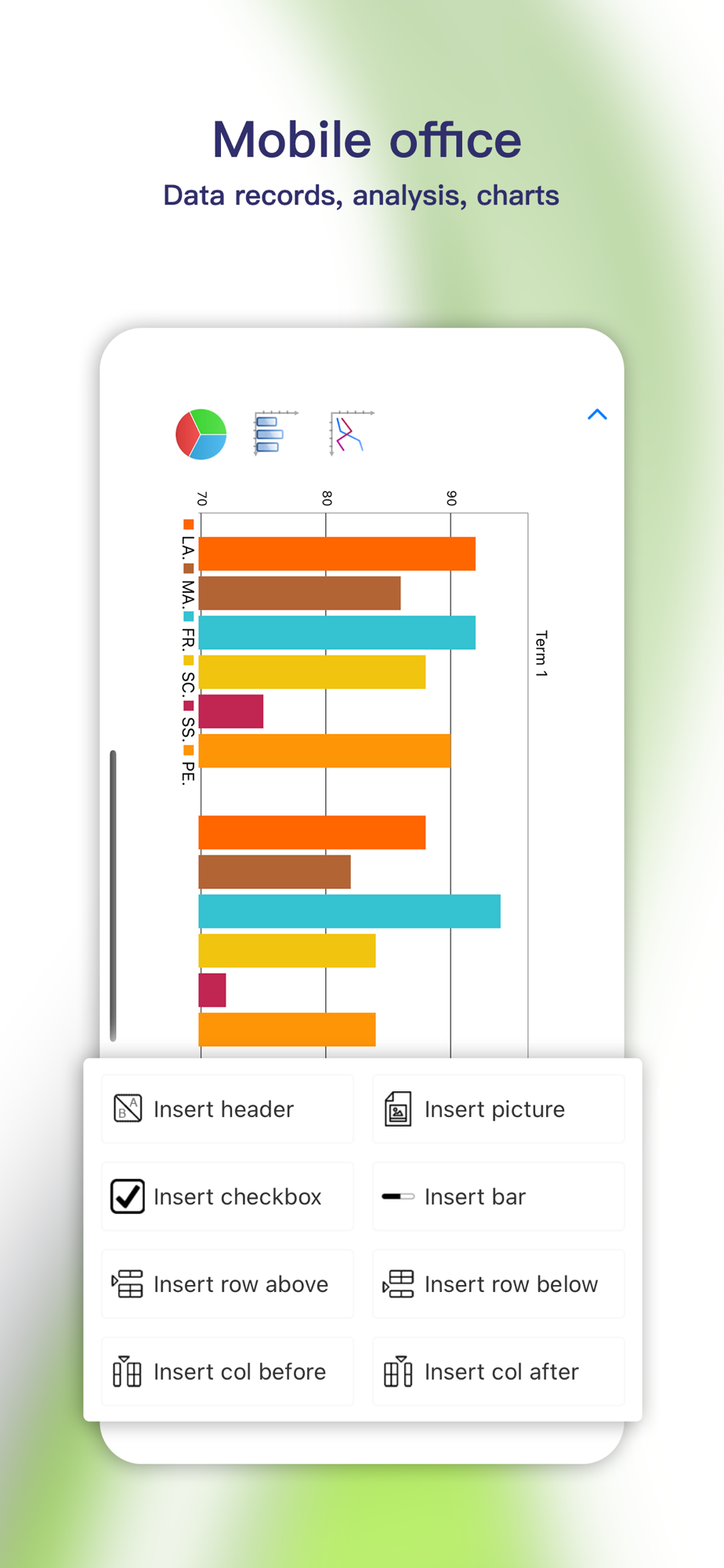 -You can insert image, checkbox and progress/column bar into cell.