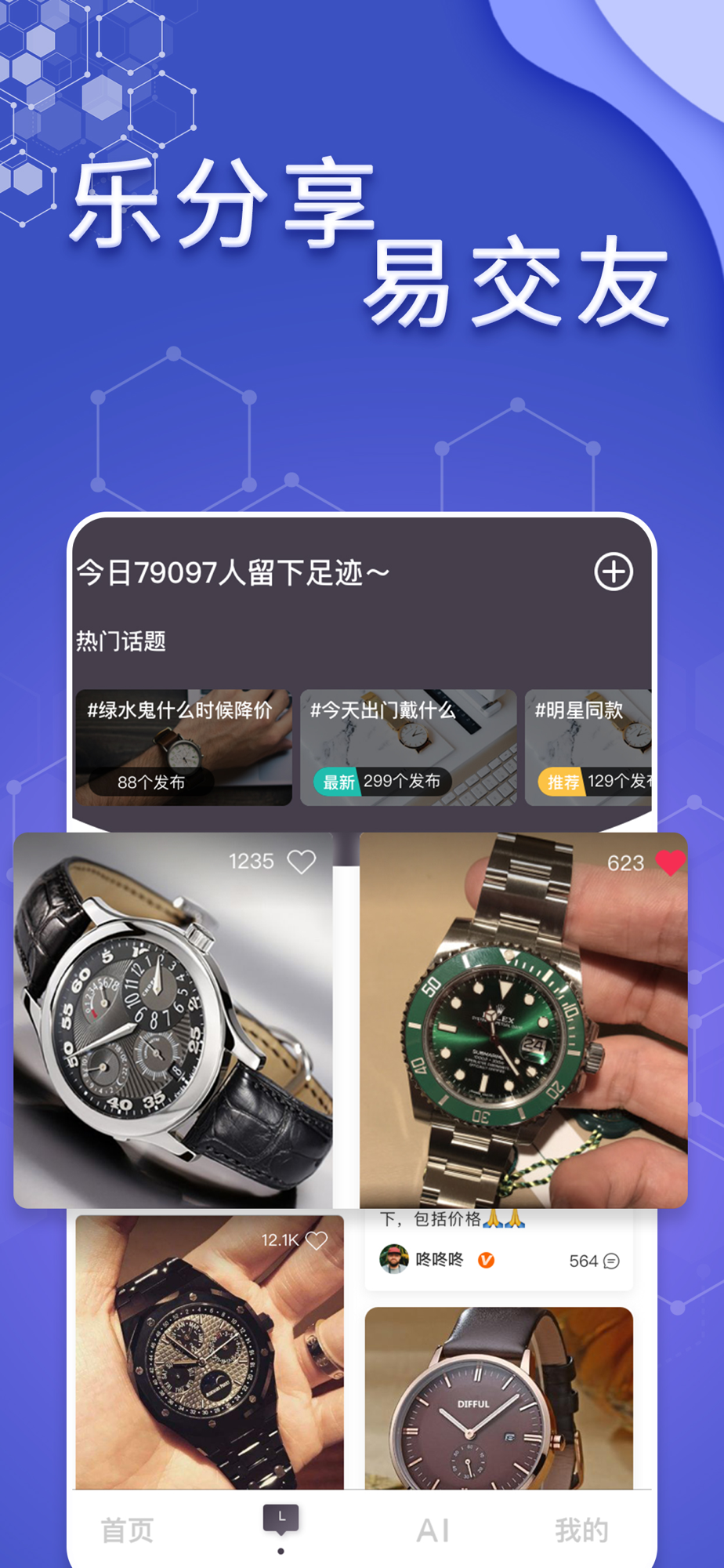 “表友交流,答疑解惑,晒表种草花样多。”想晒表?求鉴定?在手表动态栏目里每个人都能记录自己的买表历程&心得,随时和志同道合的人分享自己关于腕表的故事和看法,和表友们进行交流互动,探讨各类腕表问题。