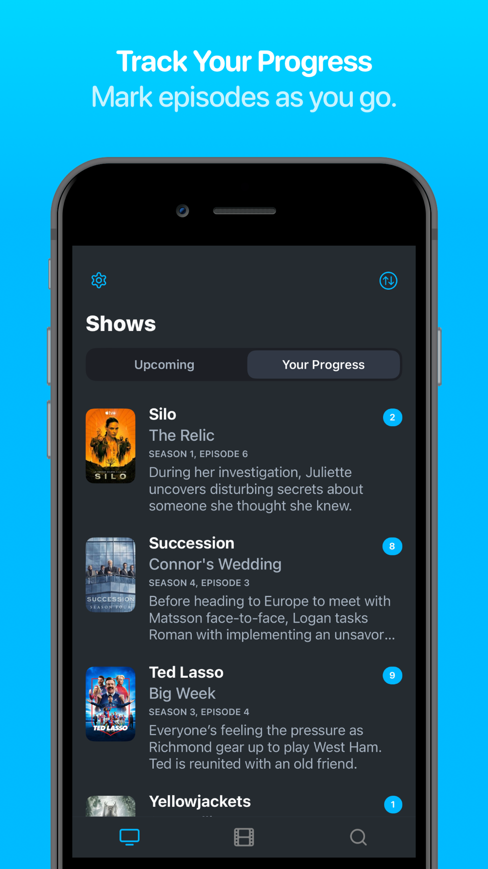 • Mark off movies as you watch them and mark off episodes to track your progress.