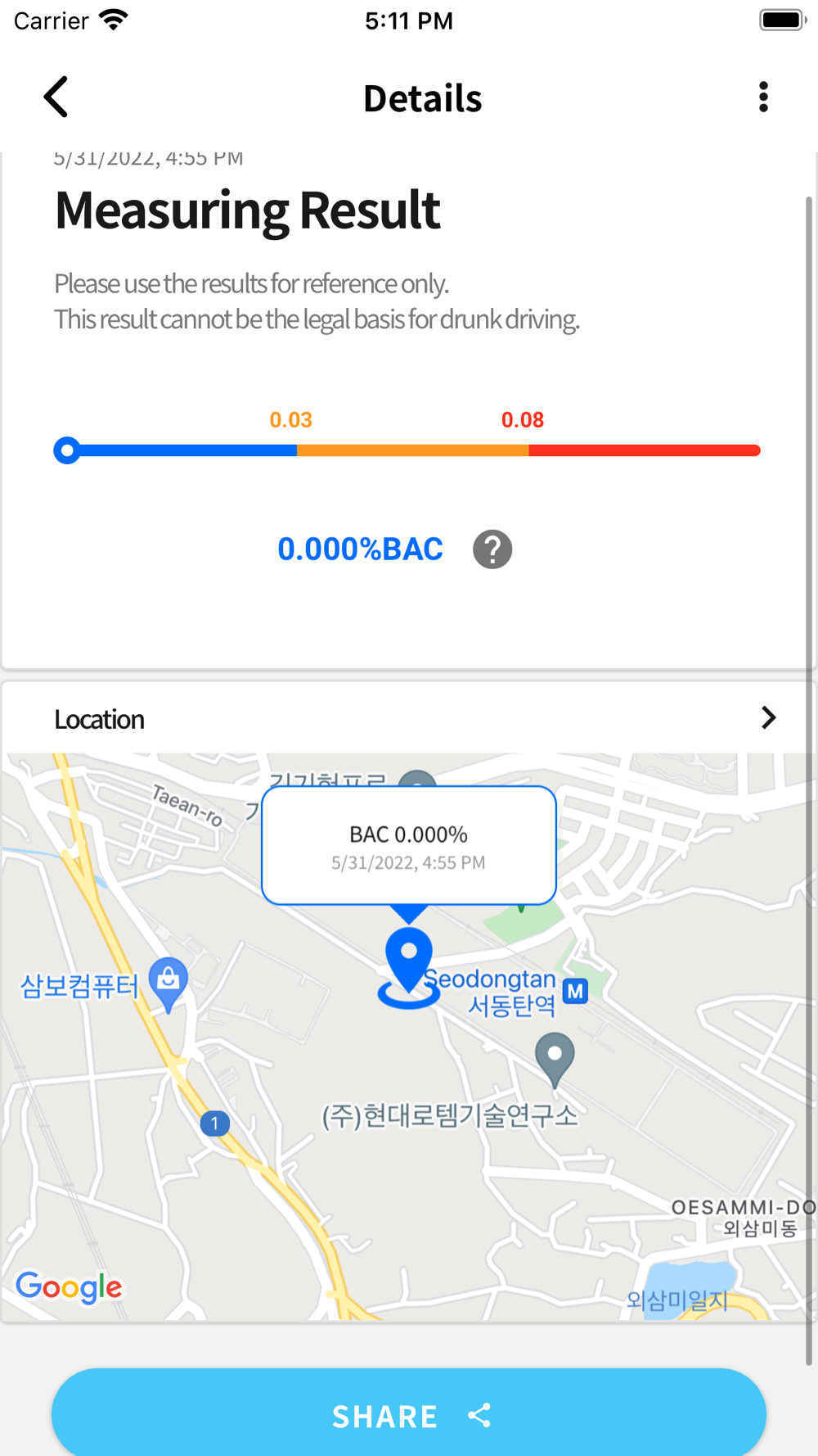 이 앱은 알코올 측정기(Blow)와 연동하여 혈중알코올농도(BAC)를 측정하는 앱입니다.