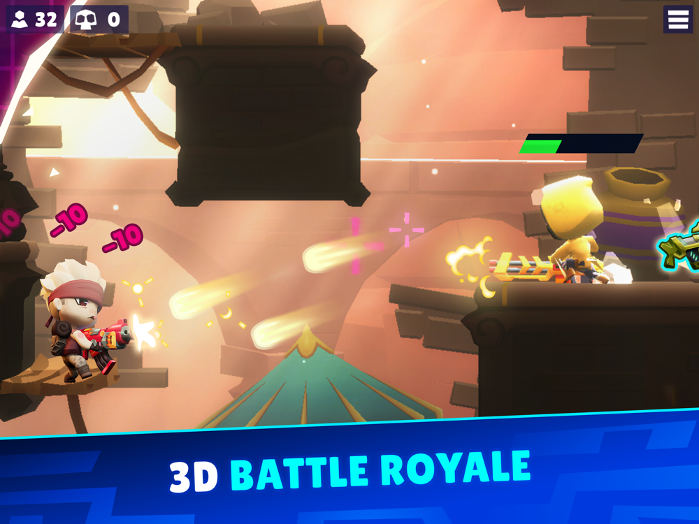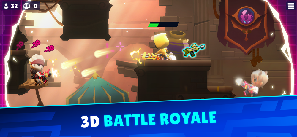 -ONLY 15-second matchmaking time to start a 32P multiplayer royale! The battleground is always waiting and always ready. Yes, the excitement of larger battlegrounds-style games - without the wait or battery drain! Grab a weapon and brawl!!
