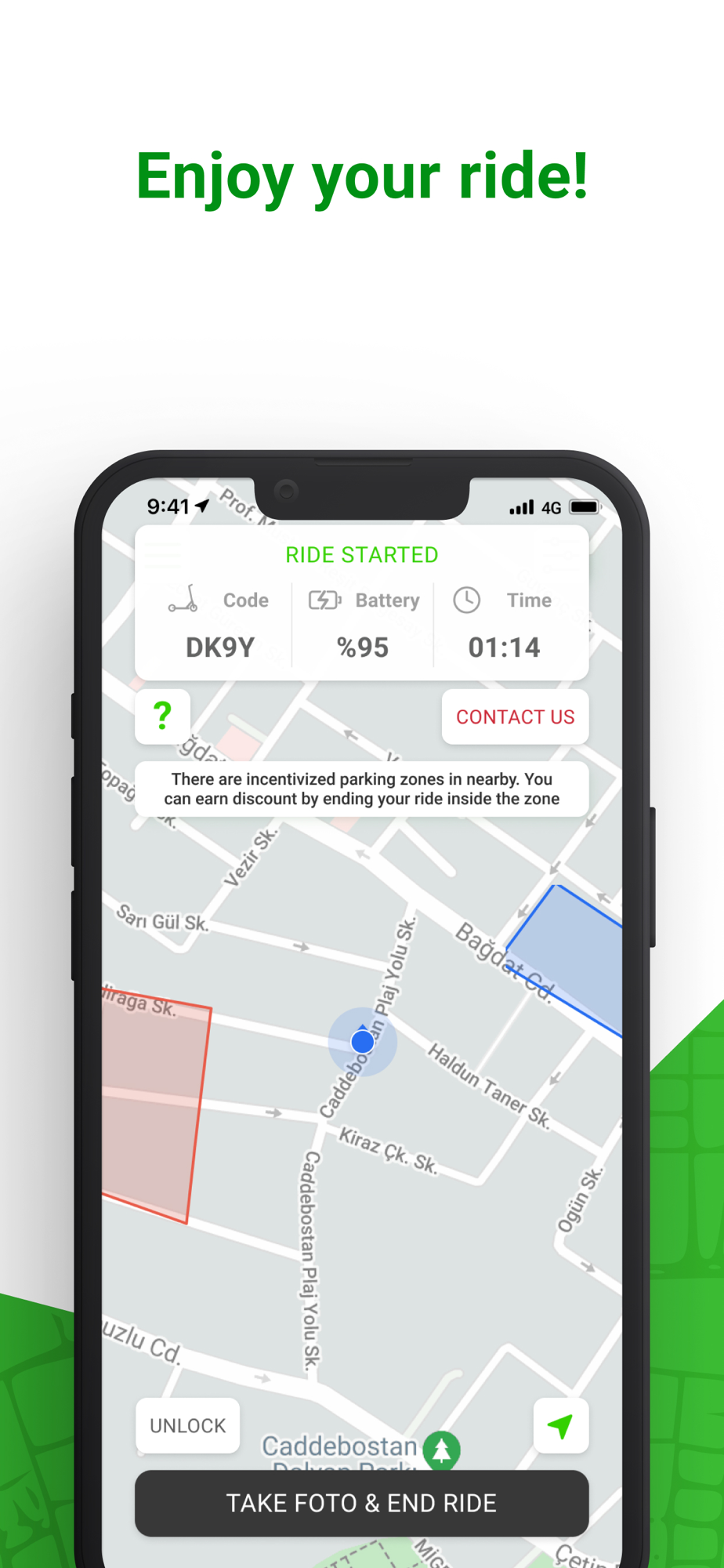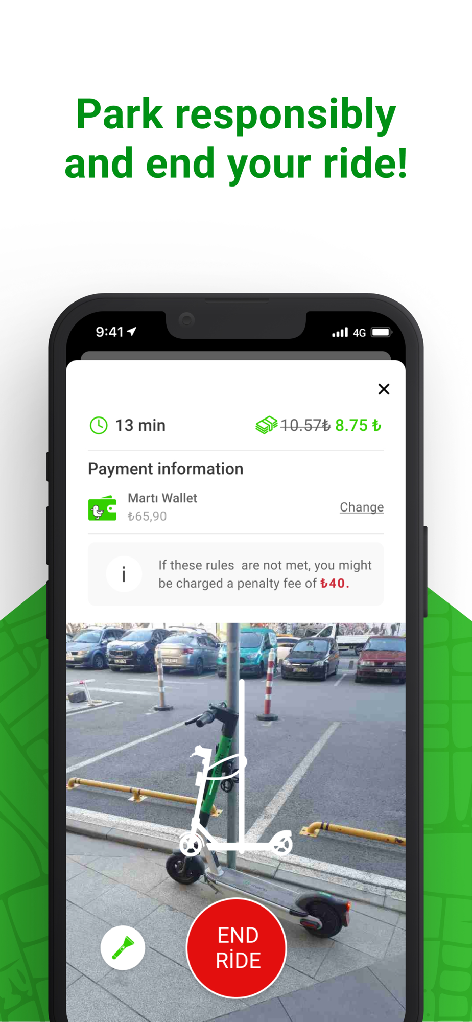 - When you want to end your ride, park according to the rules and end your ride by taking a photo of the entire vehicle (scooter, mobilet, moped).