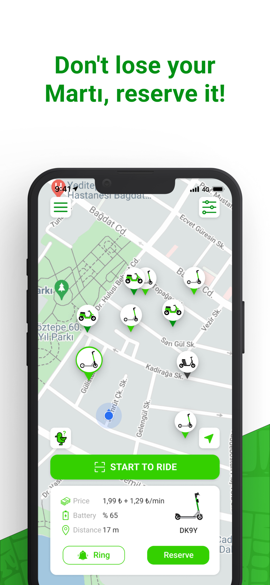 Martı is a transportation application that allows you to reach wherever you want, whenever you want. By requesting a vehicle under the TAG option in Martı, you can go wherever you want to go safely in the comfort of a private vehicle, and you can go to your destination you want to reach with an electric vehicle (scooter, mobilet, moped) in a fun, fast and environmentally friendly way.