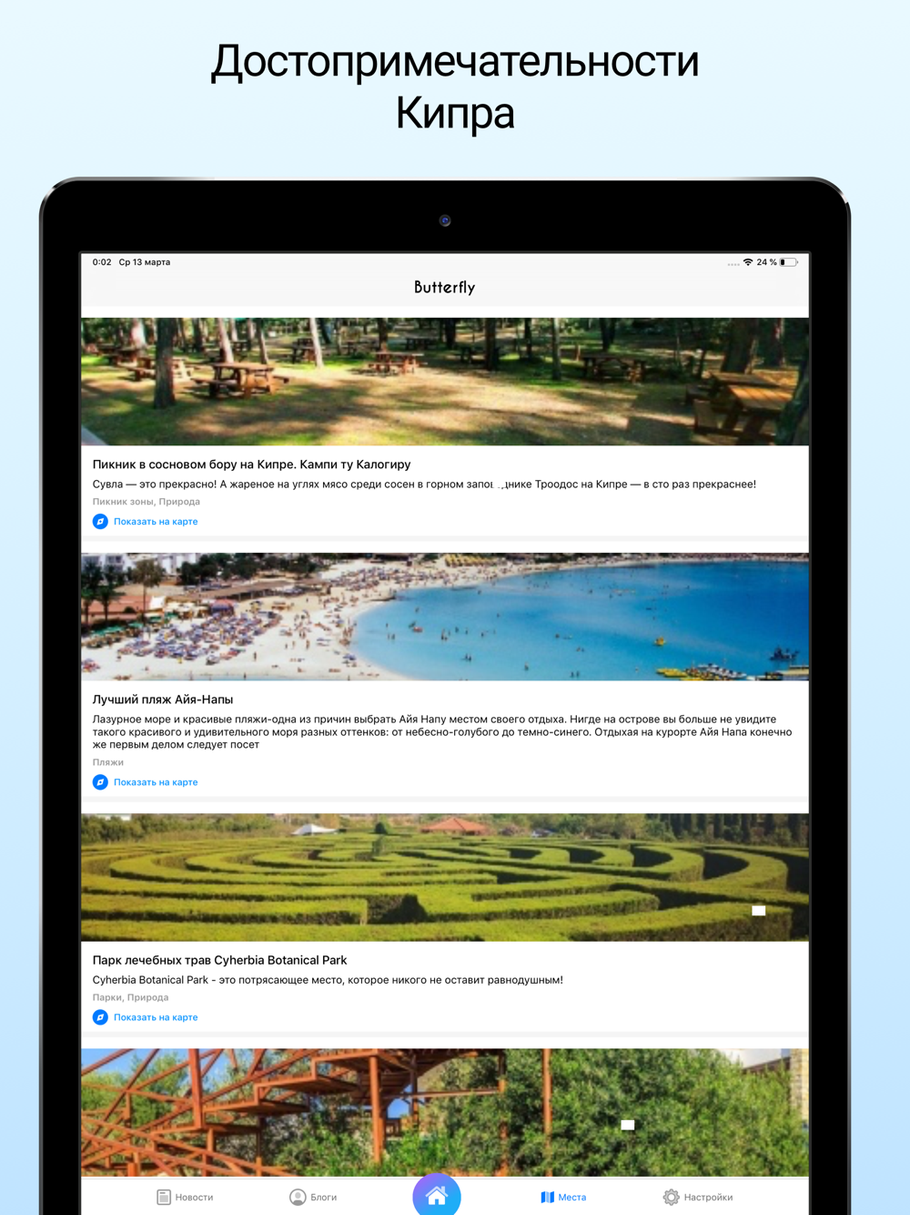 Всегда актуальные новости для русскоязычных посетителей Кипра. В приложении также представлены блоги и места, которые можно посетить на Кипре. Оно будет полезно как туристам, так и постоянным обитателям солнечного острова. Ко всем достопримечательностям можно проложить маршрут.