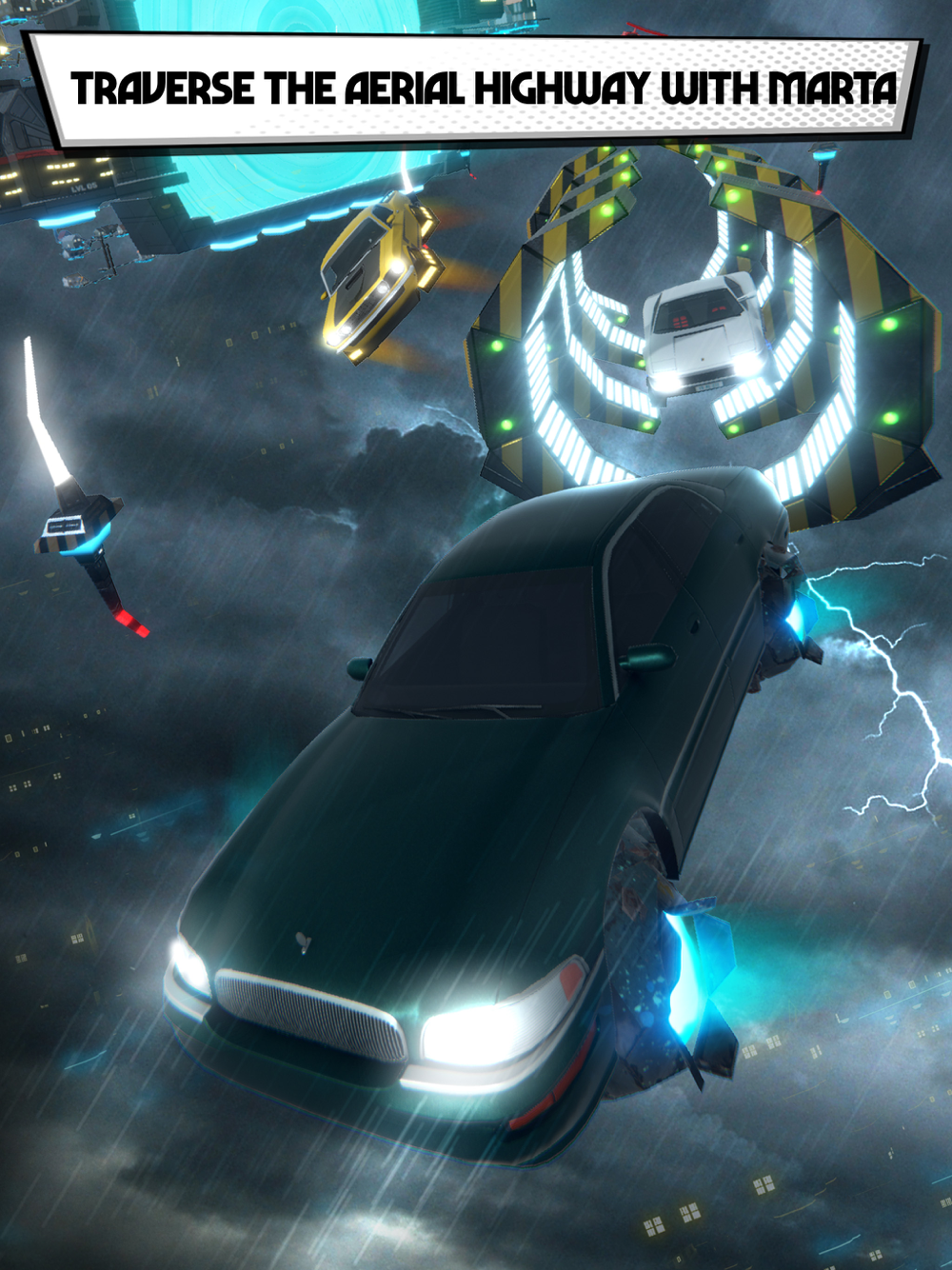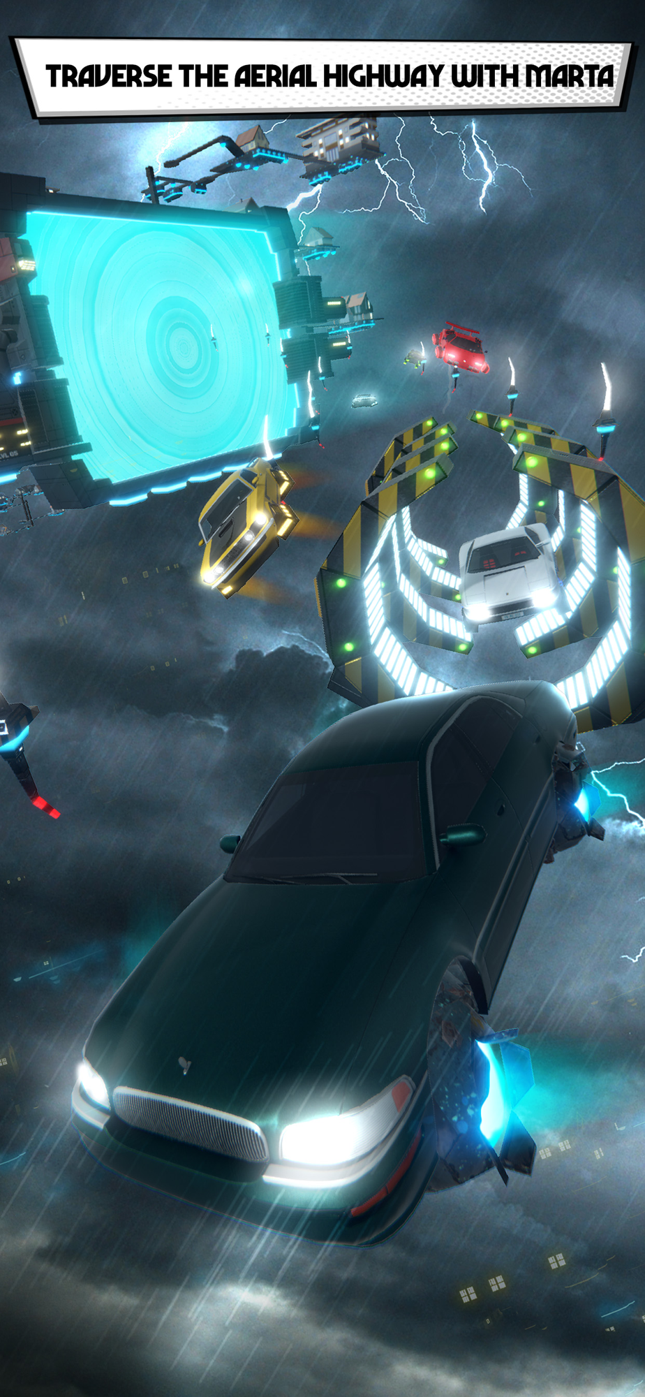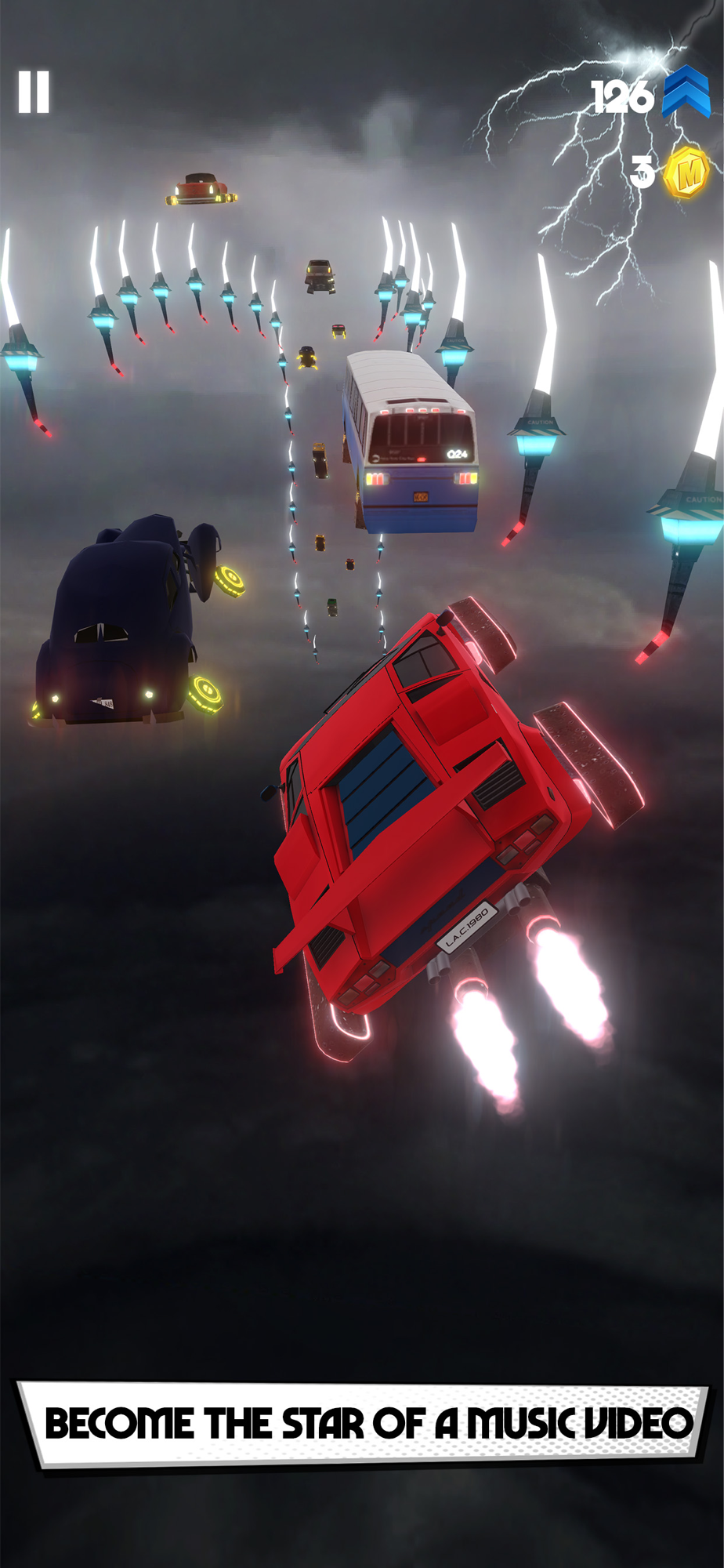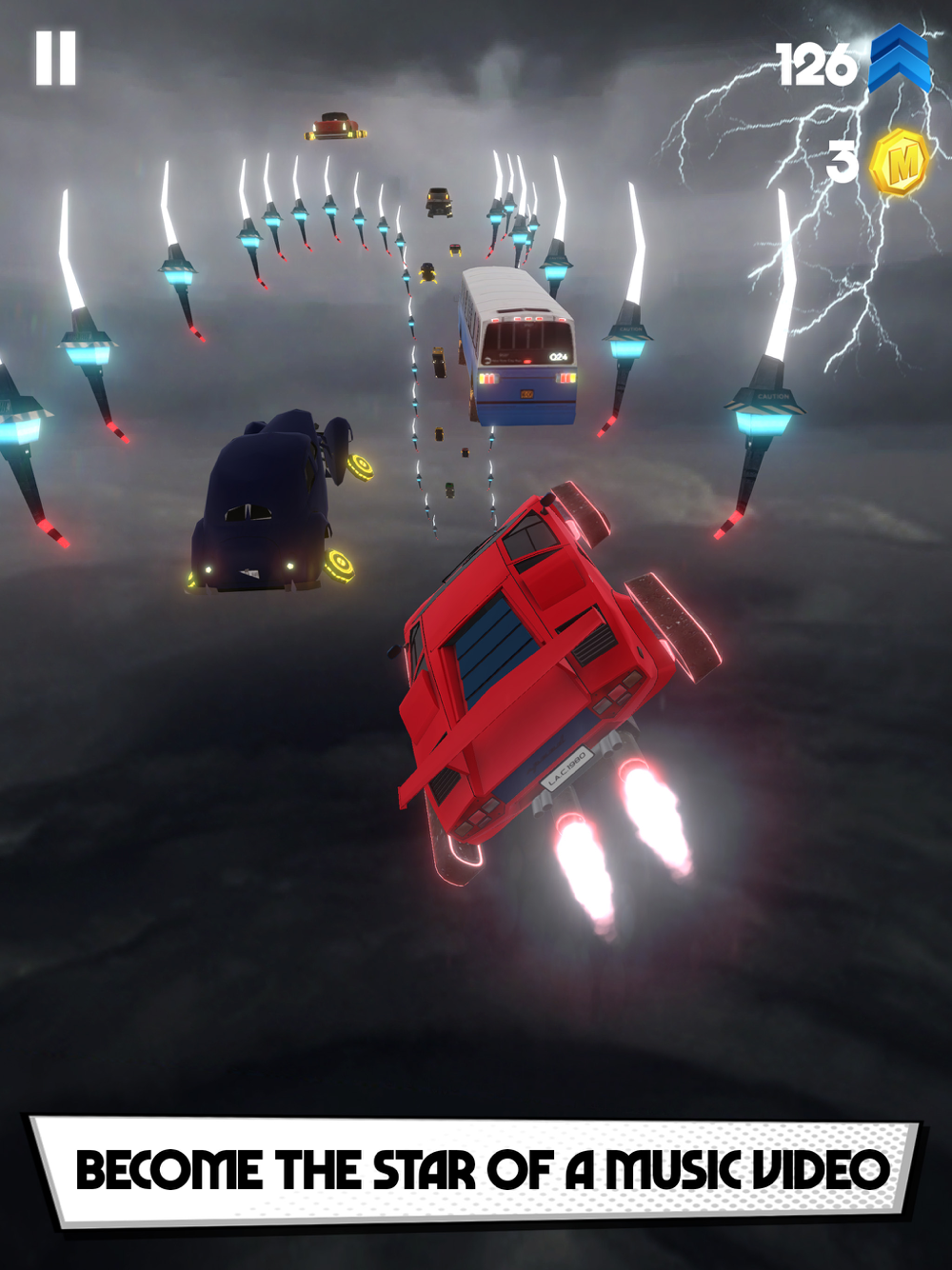 Listen to “Not Heroes“ in the game’s background or got to the YT Channel and enjoy the video as well! Steer clear of the traffic on a highway in the skies, collect coins and power ups!