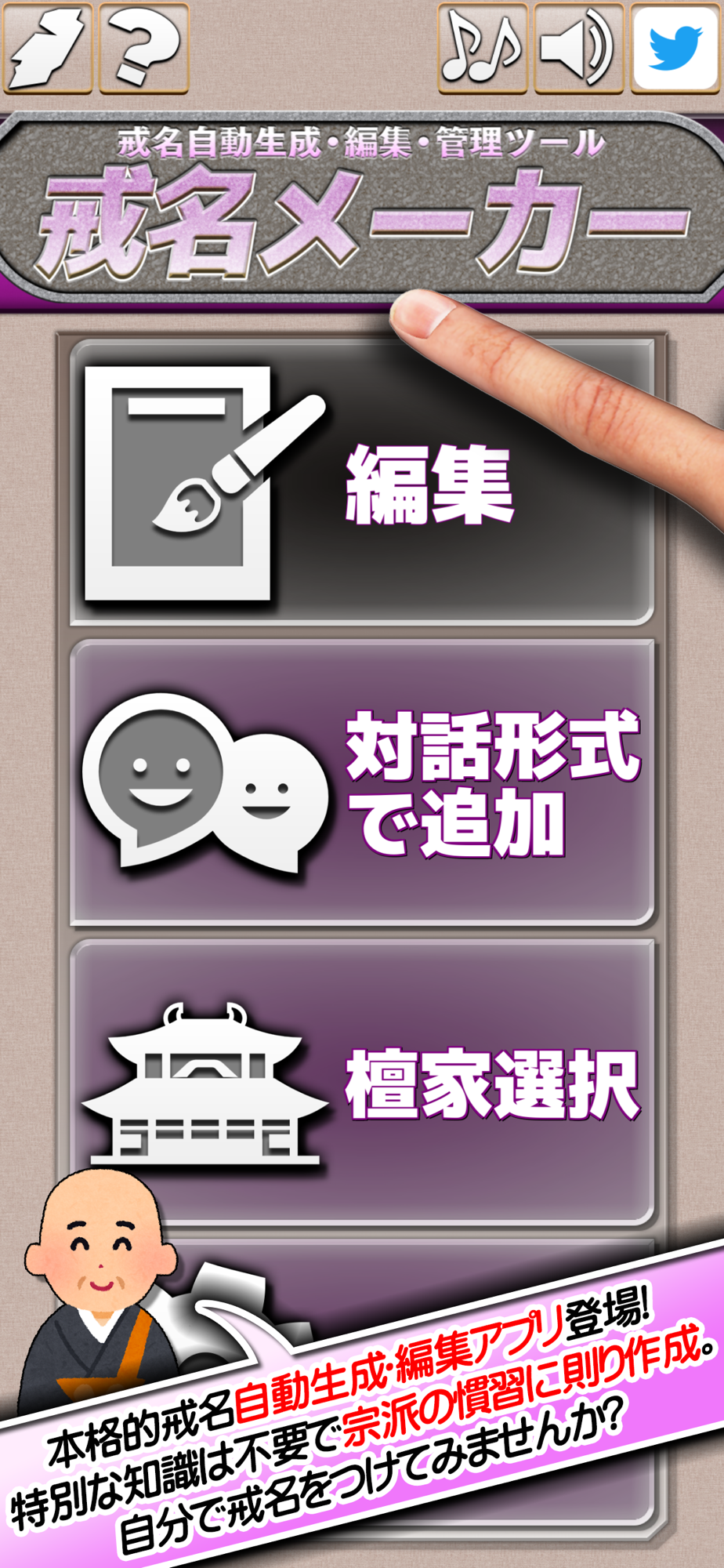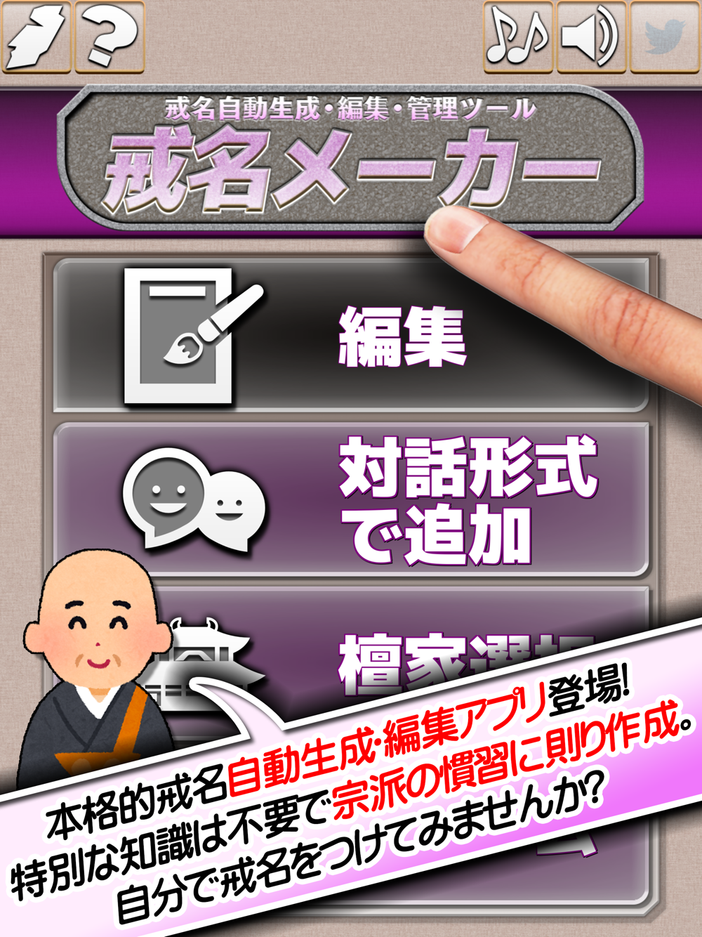 強力な本格的戒名自動生成・編集・管理アプリ。