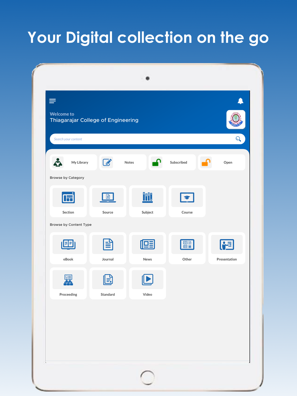mLibrary mobile app brings your library subscription, top open access academic content including eLearning and multimedia to your fingertips.