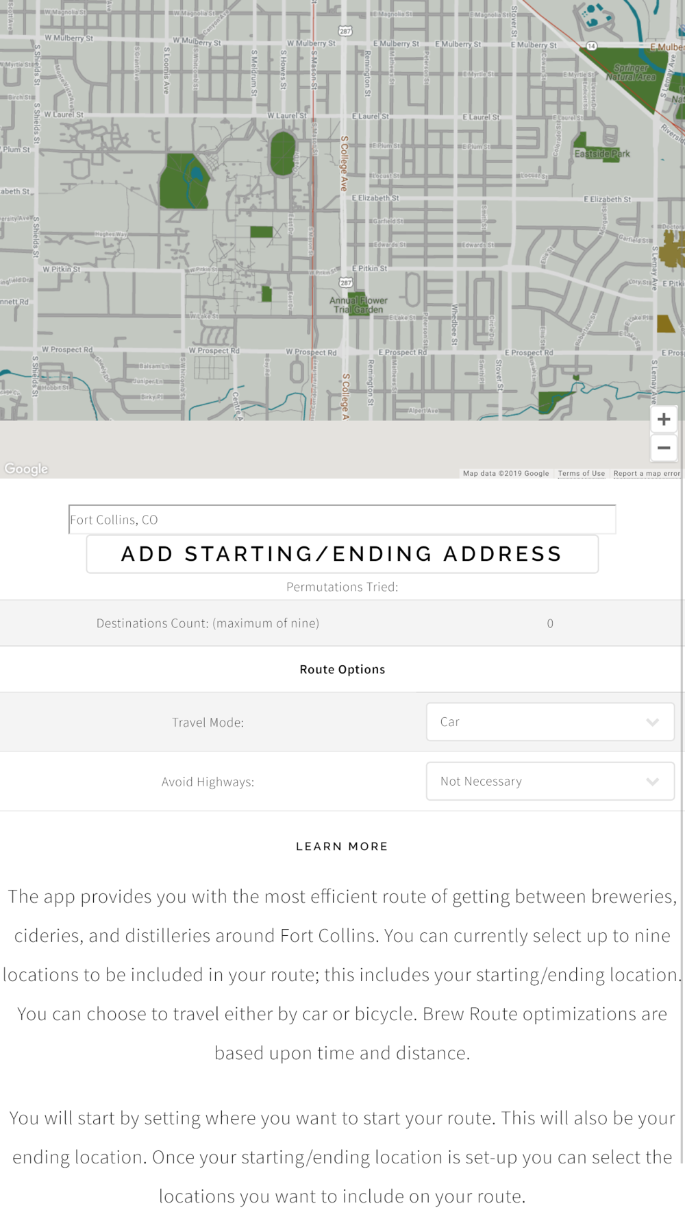 Find the most efficient way to drive, bike, or walk between the 60+ breweries, cideries, distilleries, and wineries in Northern Colorado