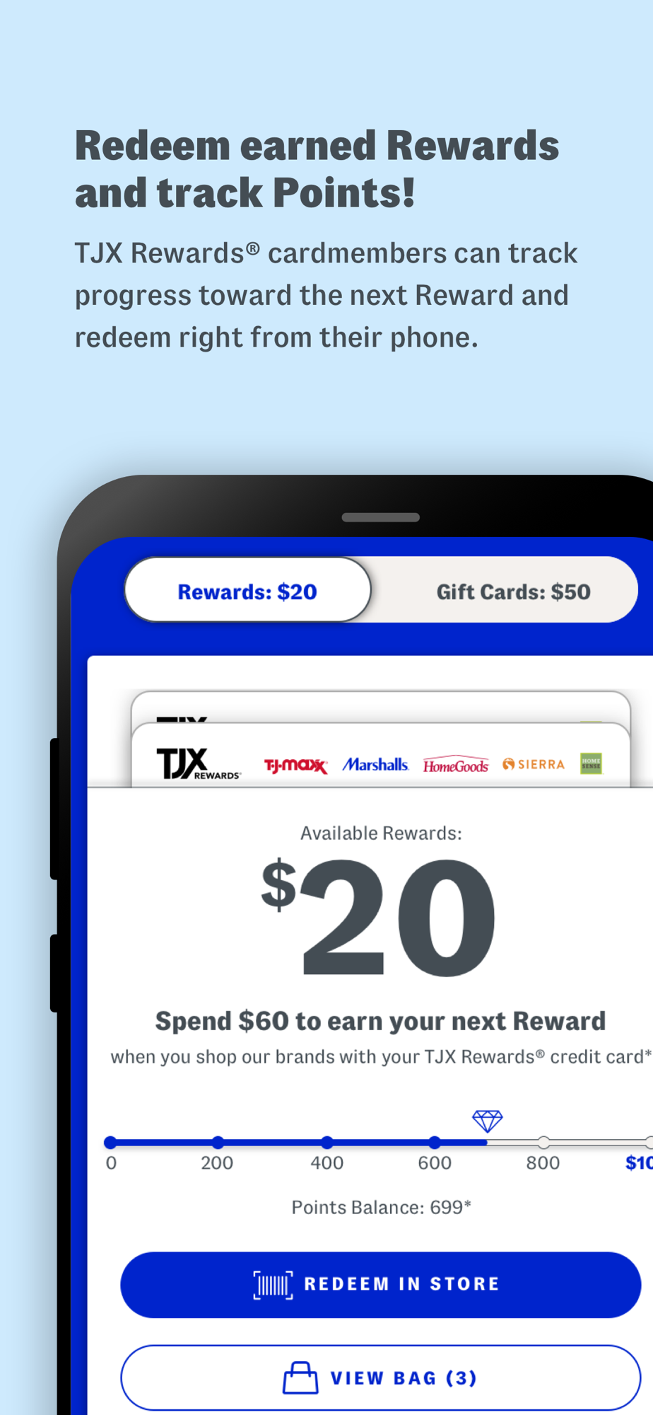 - Register for the Marshalls App to create a mobile account (you can use your HomeGoods and T.J.Maxx account here as well).