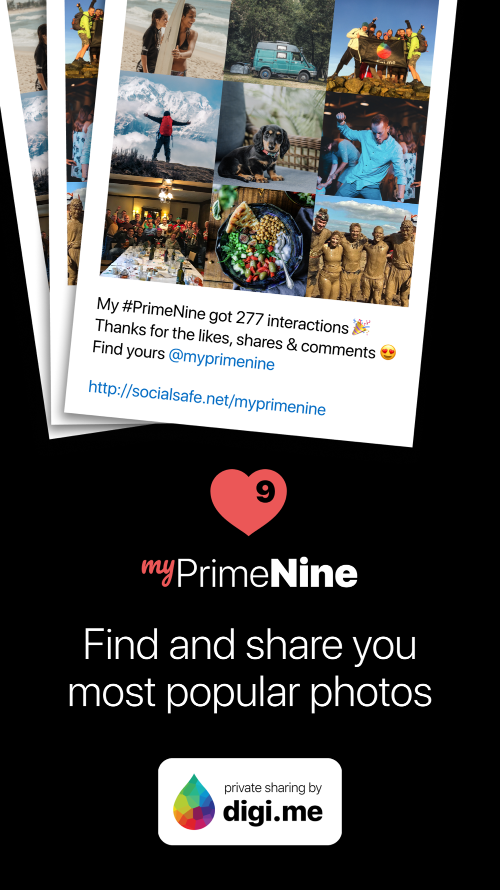 Using Private Sharing technology by digi.me, myPrimeNine analyses your posts to find the photos that received the most likes and comments without giving us direct access to your accounts. You can decide which of your social accounts to include and change the timeline that it covers.