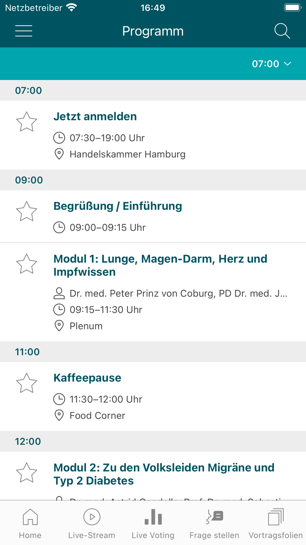 - Erstellung des persönlichen Programms mit Kalenderfunktion (Favorisieren, Teilen, Notizfunktion)