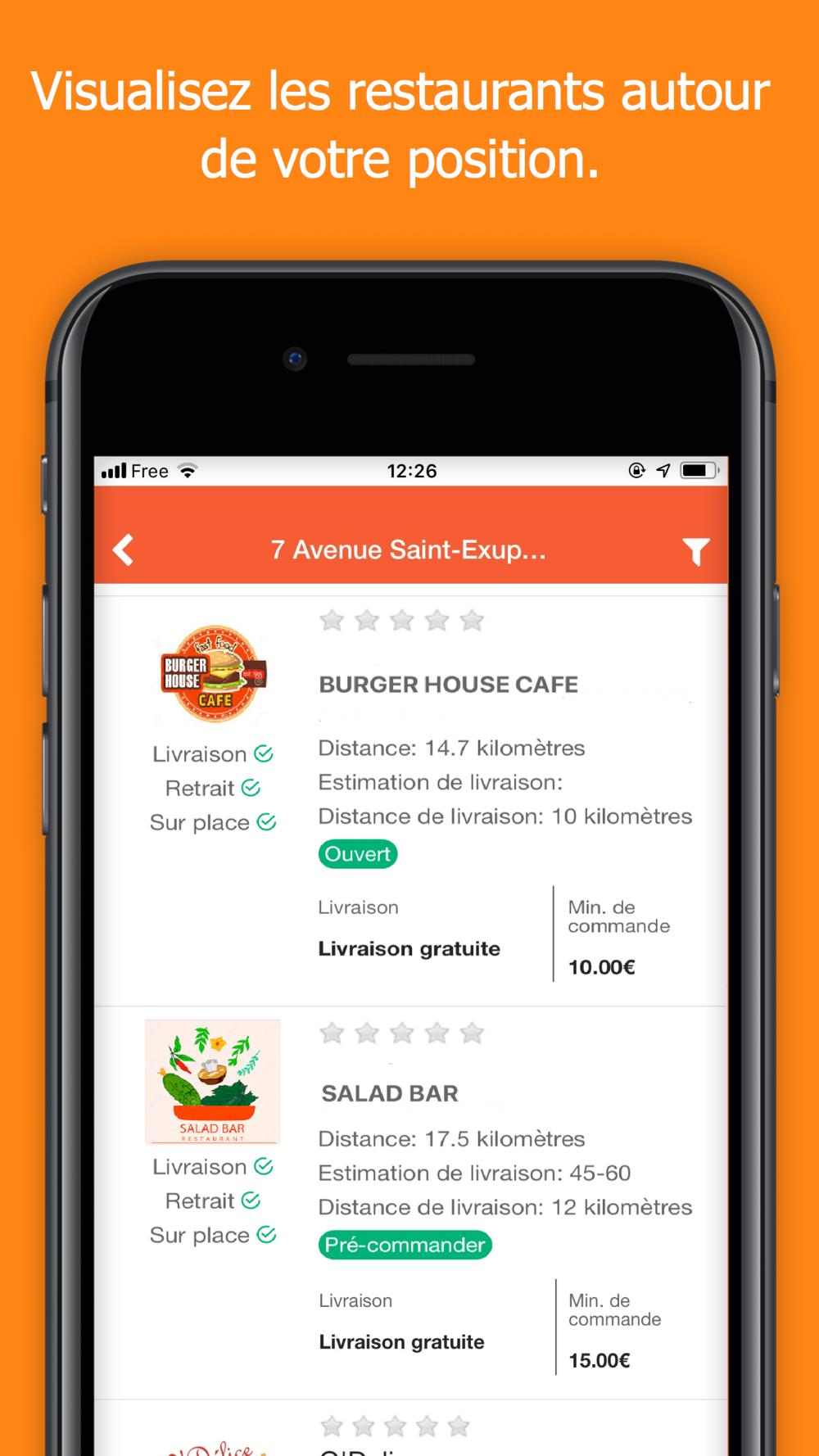 Cette application vous permet de commander votre repas chez vos restaurants préférés en avance ou sur place.