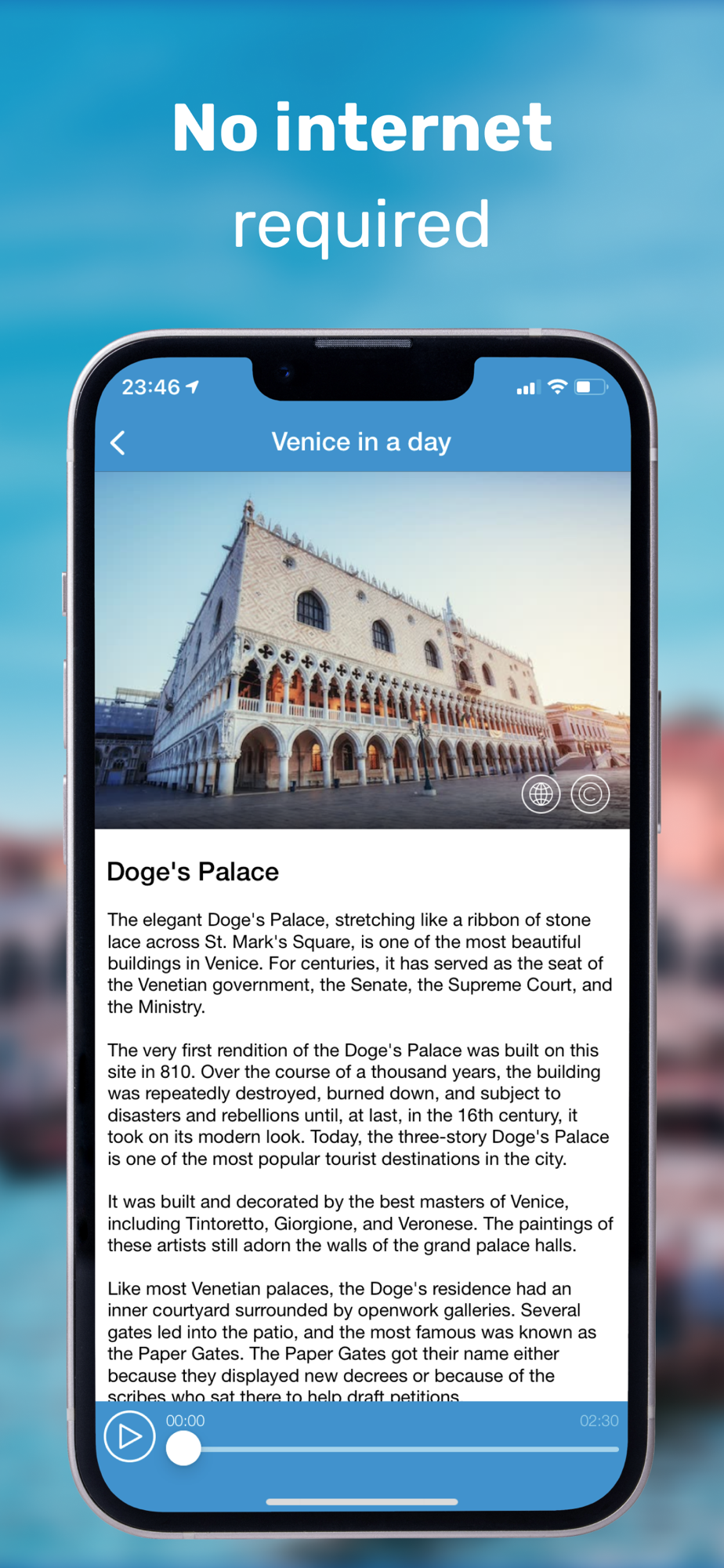 Featuring accurate offline maps and extensive audio tour for both the popular and lesser-known tourist spots across the city, this travel guide app offers you everything you need to explore Venice in a day, even if it's your first visit to the famous city of love!
