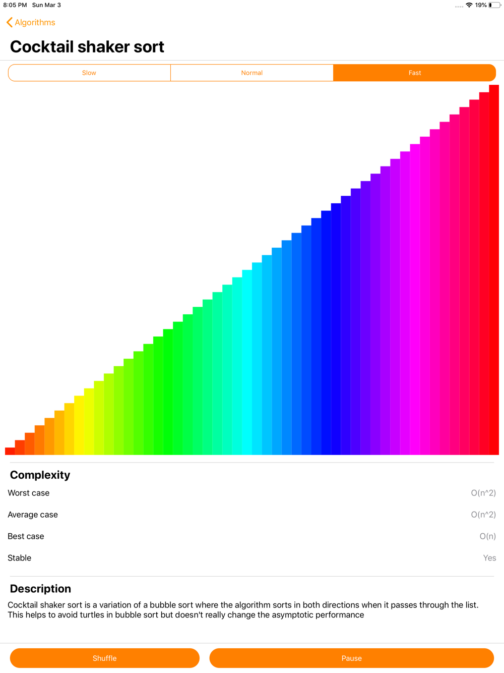 How to sort a list of numbers? There are plenty of ways, some are better than others. See by yourself which one is the best. Play with different sorting algorithms to see how they work! Choose their speed and notice how a few lines of code can make a dramatical difference in speed. Compare their asymptotic complexity to deduct their potential performance.
