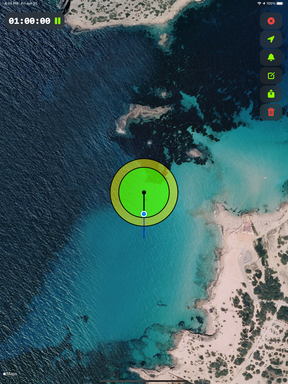 The system monitors your position and in case of exceeding the safety margin it allows the activation of alarms, visual measurements and notifications. When the app is in the background, whenever notifications are enabled, the Notification Center is used to warn of a perimeter violation.
