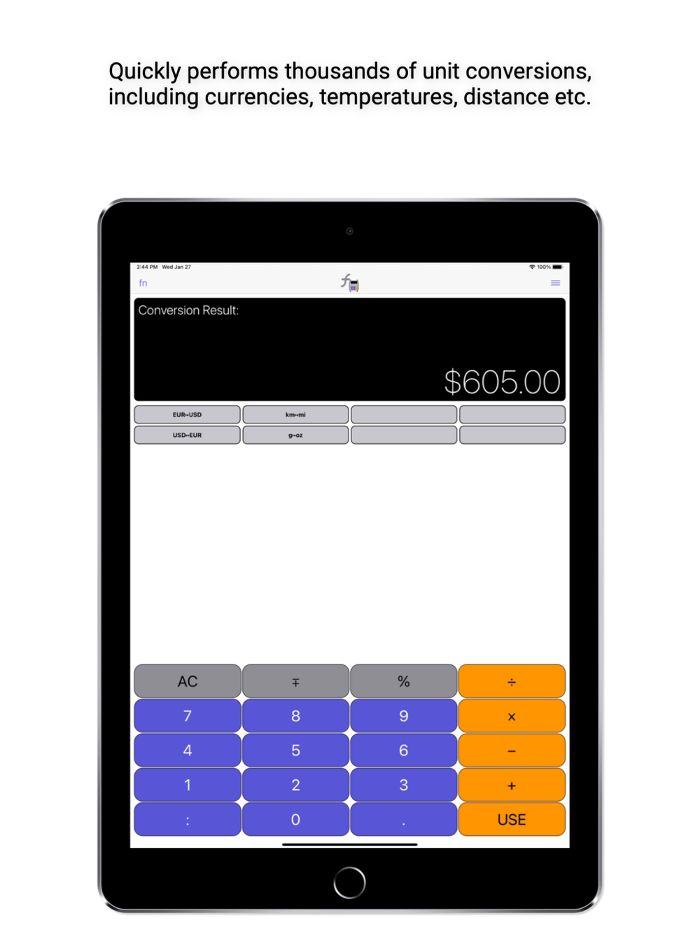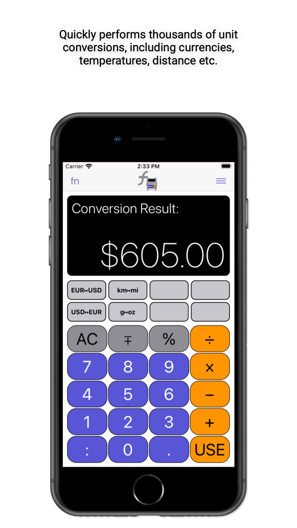 FunctionCalc has been found to be especially beneficial for those traveling to foreign countries that use different monetary and measurement systems. Keeping the host country's currency and measurement conversions in the preset buttons allows for quick conversion to the user's own familiar units, even if the phone does not have Internet connectivity at that time.