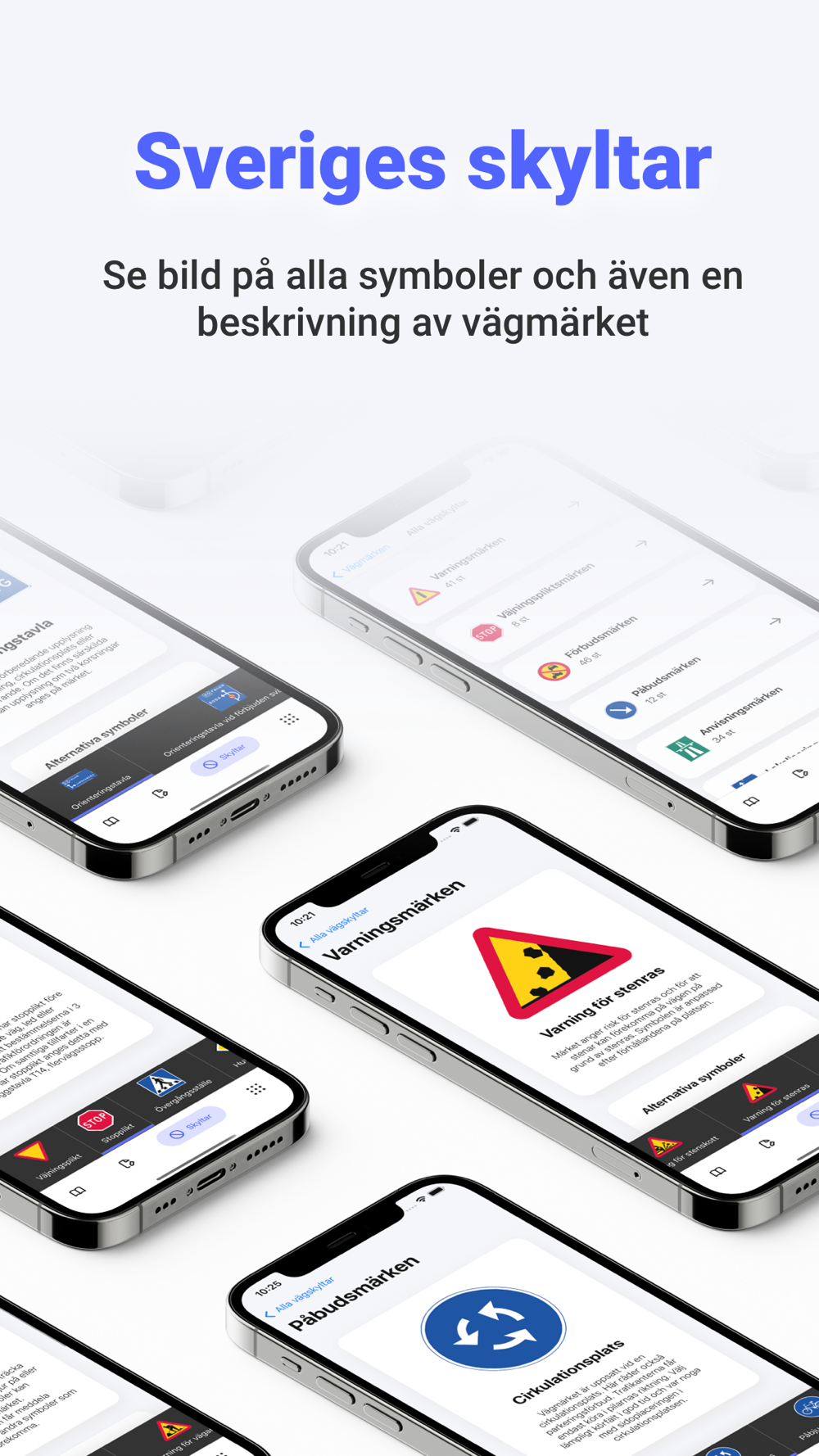 Körkortsguiden innehåller alla Sveriges vägmärken, med en tydlig bild och en beskrivning på skylten. Har skylten alternativa symboler så visas även dem under vägmärket! Du kan även utmana dig själv och testa dina kunskaper genom att öva på alla vägmärken med Vägmärkestest.