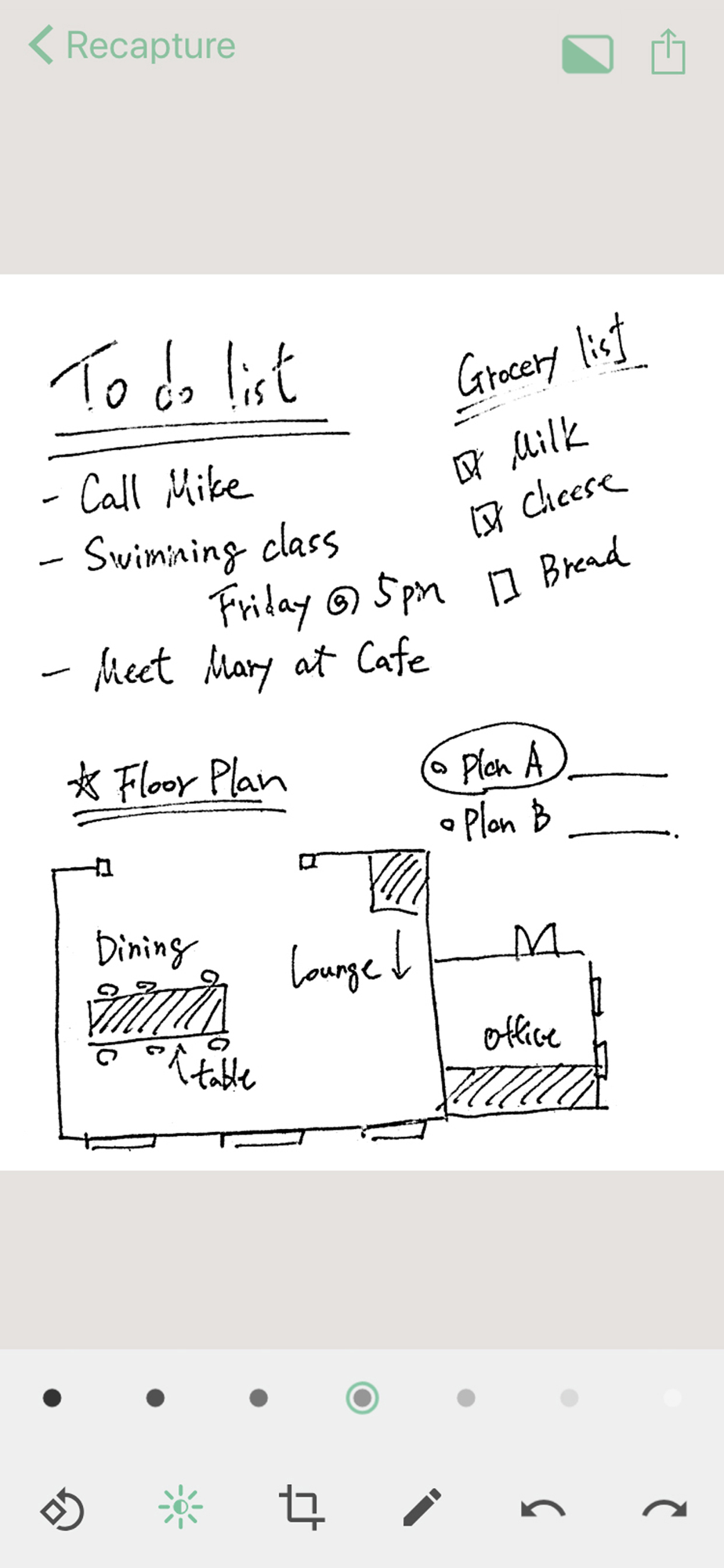 Easy to use. Just launch the app and shoot the Kaite itself, it automatically recognizes the writing surface, corrects the tilt, etc., and makes it easy to see and digitize cleanly. Digitized memos can be saved to the camera roll, sent to email or cloud, and easily recorded and shared.