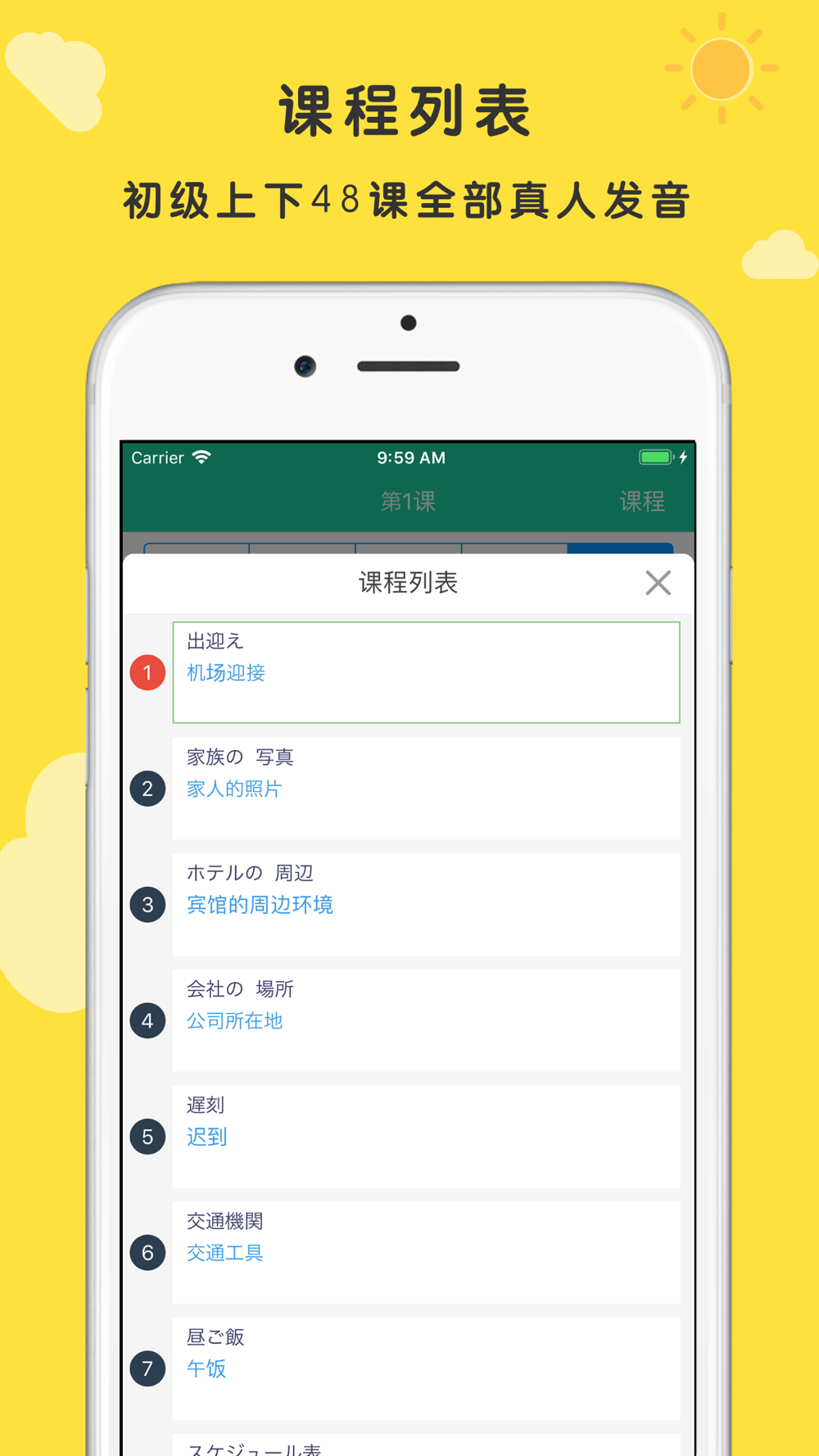 大家的日本语, 包括了最新版教材 48课有声教程,包含单词,句型,会话,语法,全部高清真人发音.