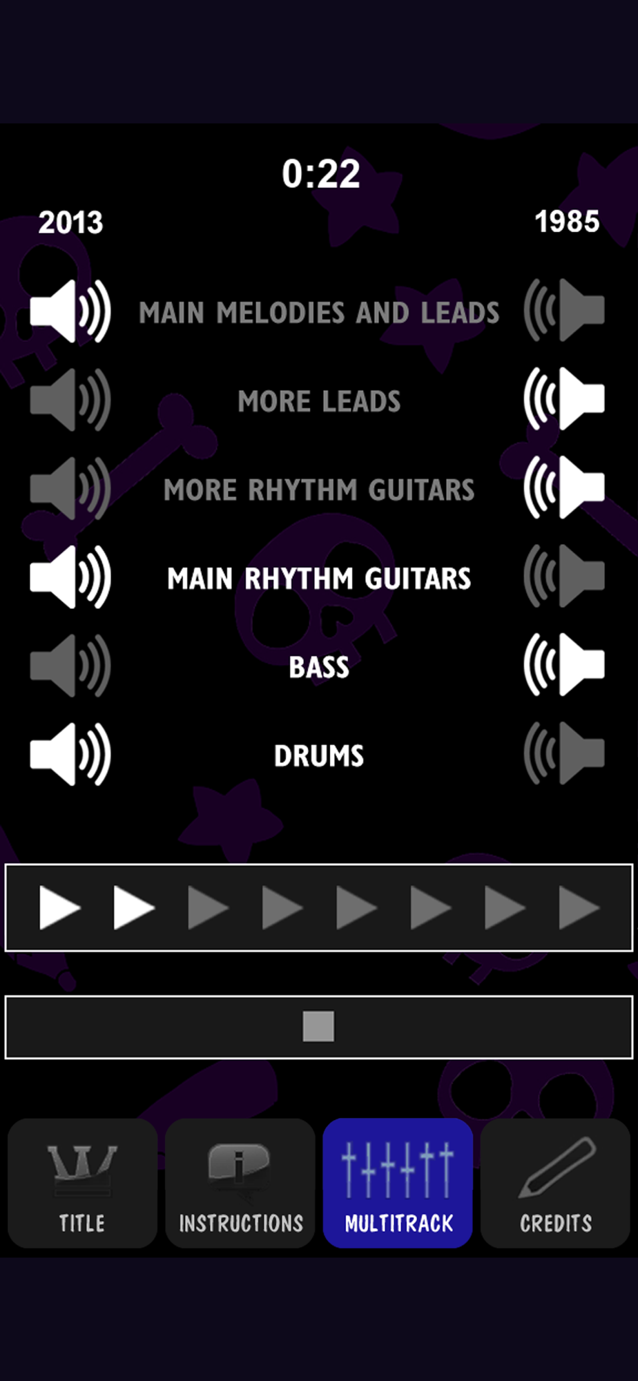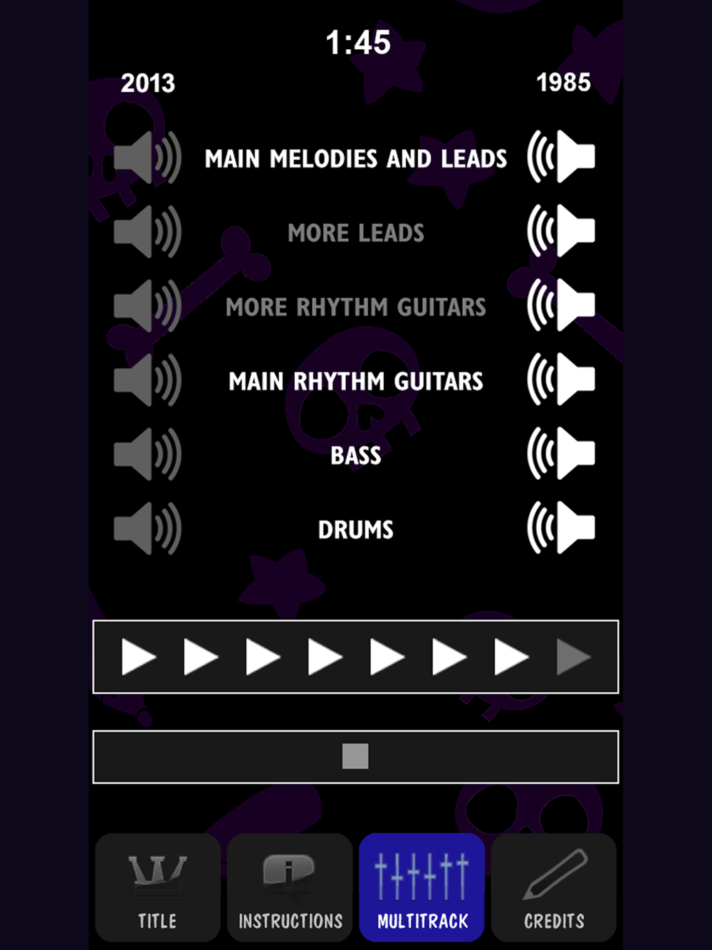 - Each track contains two "speaker" buttons which let you select which instrument you want to hear. You can hear each recorded part by itself or not at all.