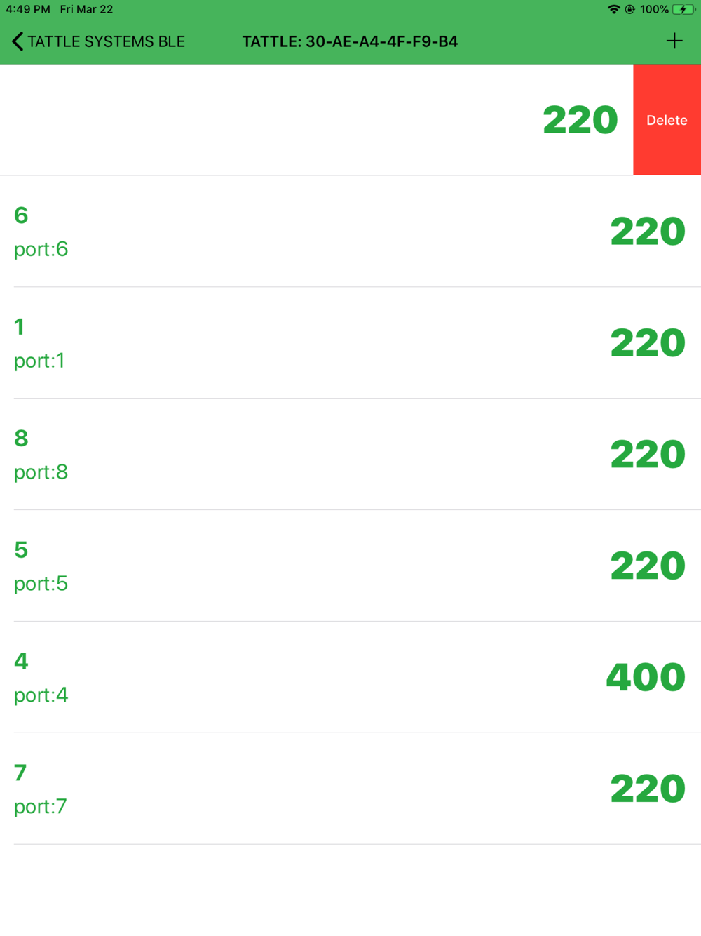 TATTLE SYSTEMS Bluetooth Low Energy (BLE) App supports the use of Tattle Systems. TATTLE SYSTEMS BLE App communicates from IOS to TATTLE SYSTEMS BLE device. Easy digitize and connect any sensors for any IoT and IIoT applications with Tattle devices.