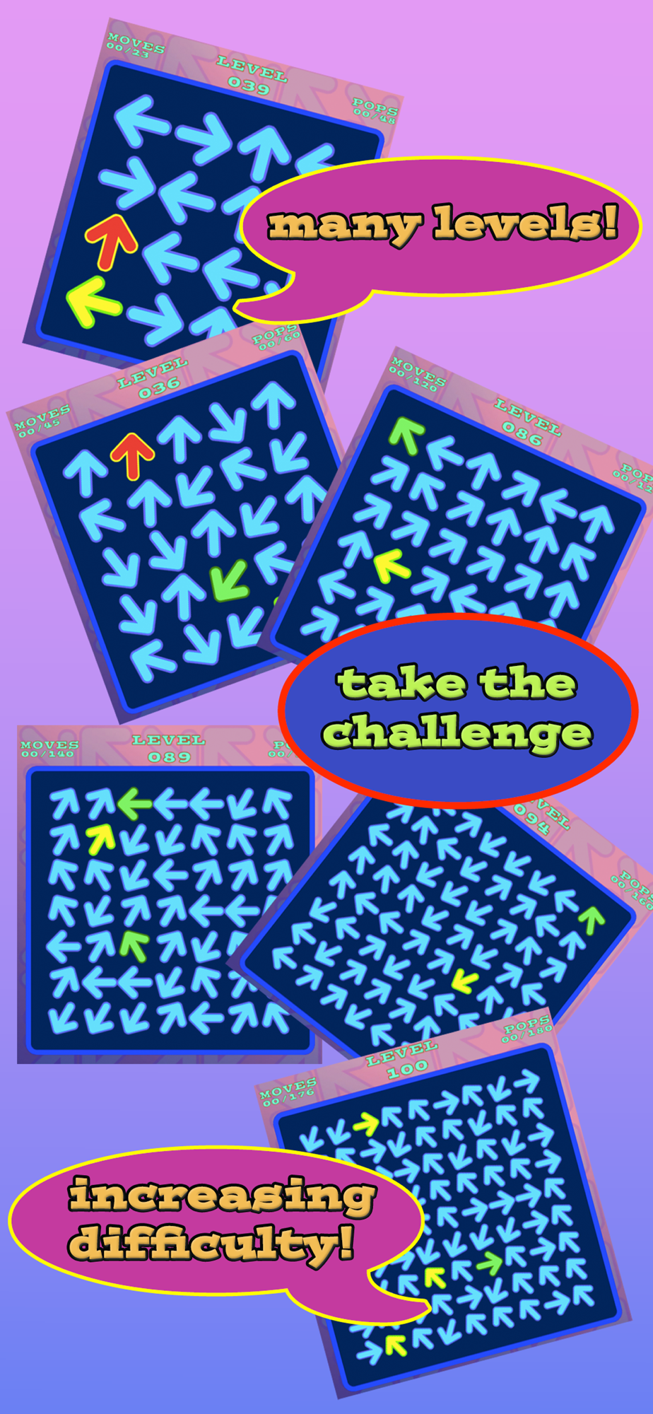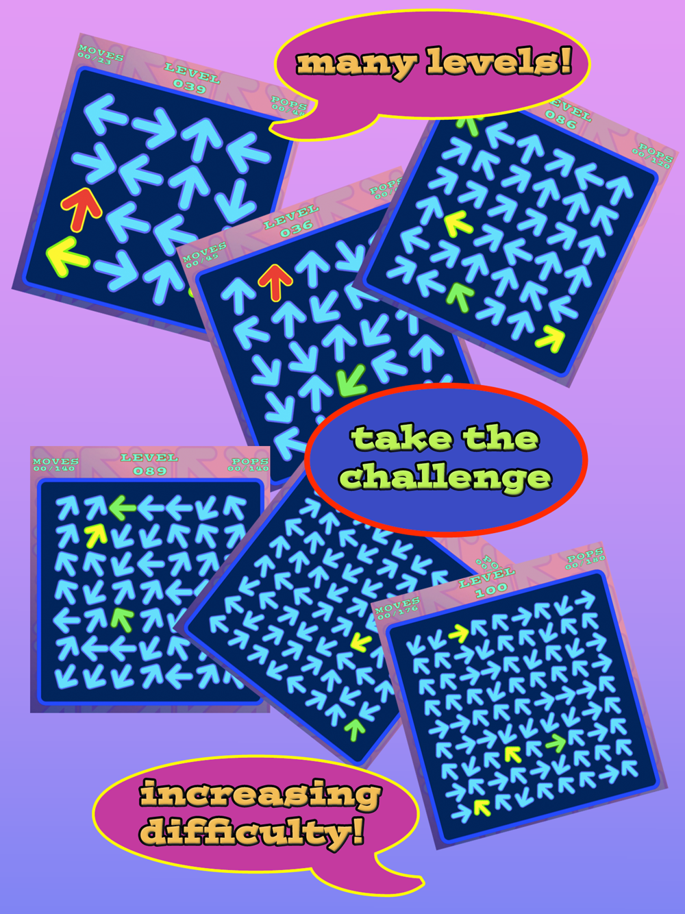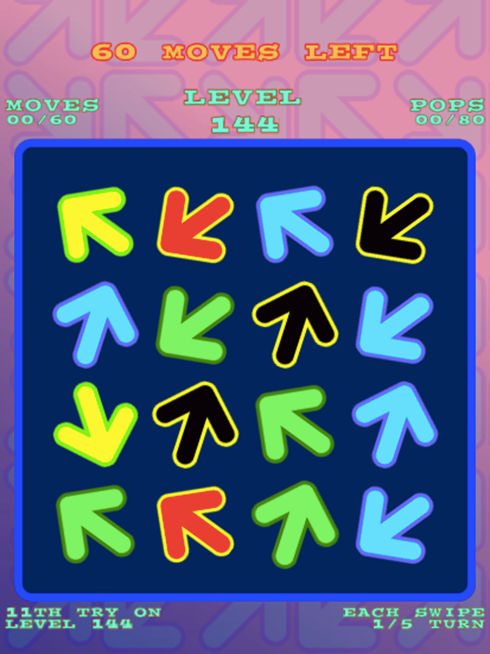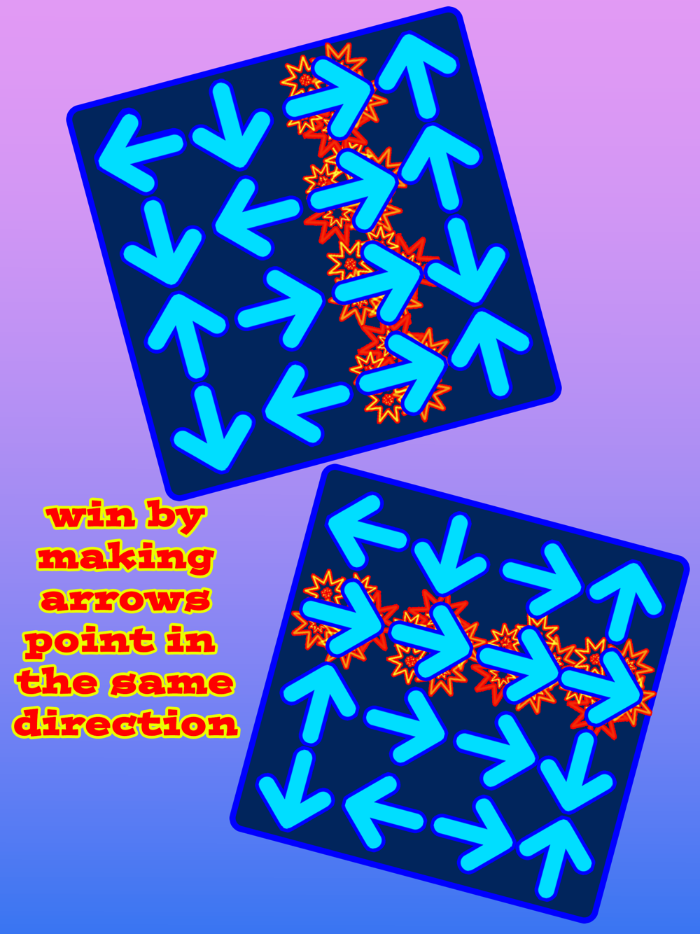 Looking for something different? Swipe up, down, left or right to make arrows in a row or column point in the same direction!
