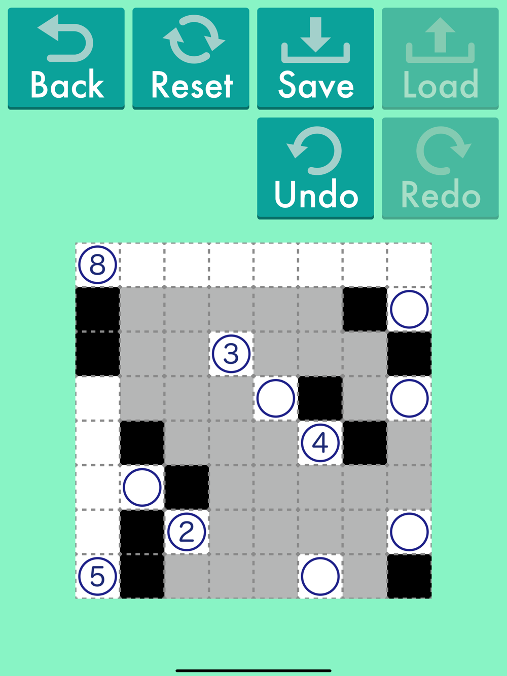 "Nurimisaki" is a puzzle game which you fill all cells to black or white .