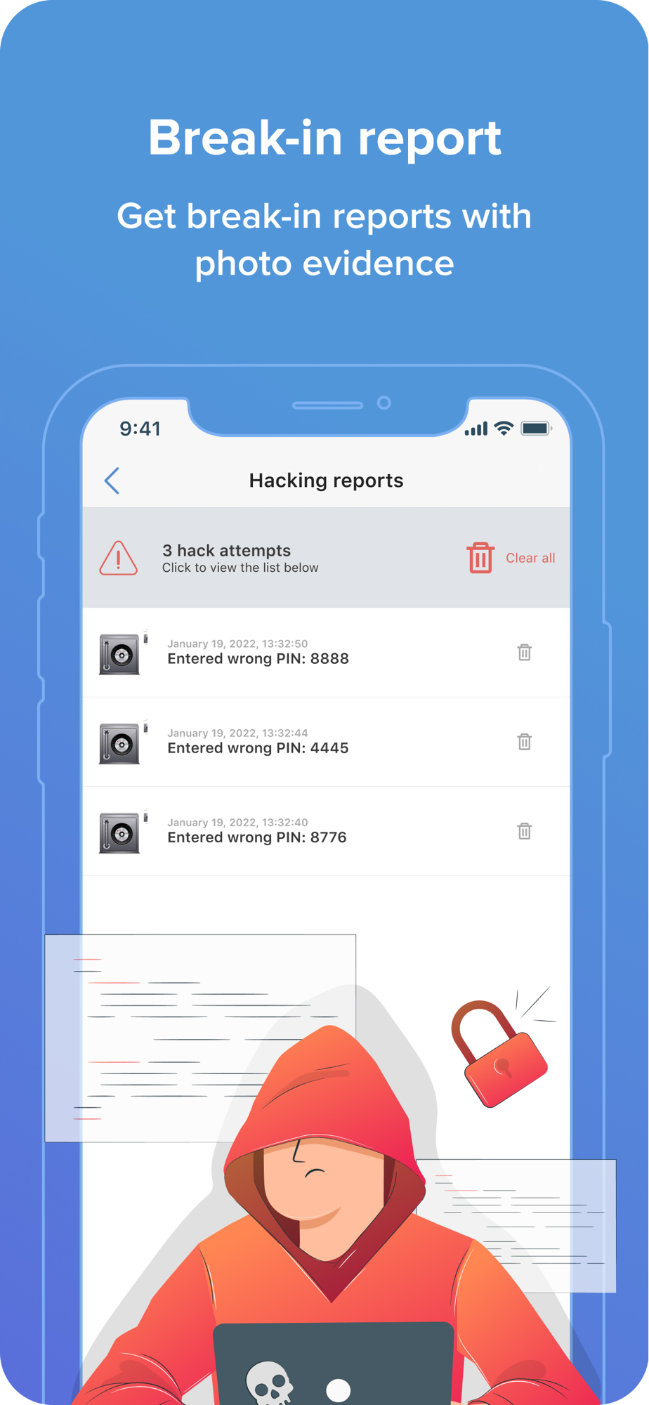Get break-in reports with photo evidence