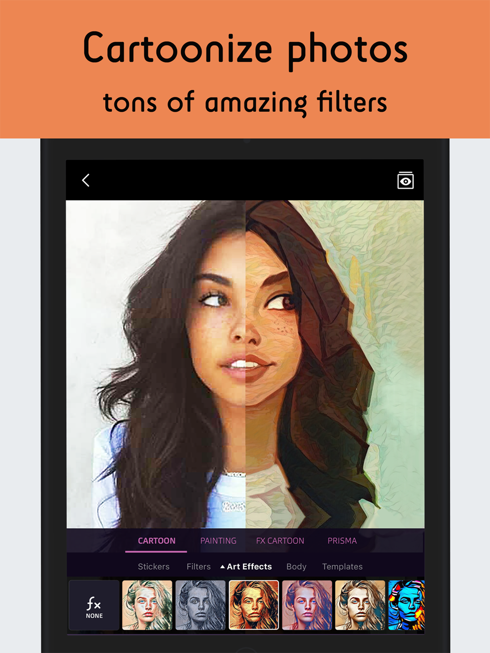 NOTE: You can apply different modified filters or effects to your photos. Once you choose a filter or effect, your photo will be uploaded to the server. Then Photo Garderobe's algorithm runs, transforming the photo. All your images and photos will be deleted permanently from our servers when the process ends. We are not sharing and storing your photos.