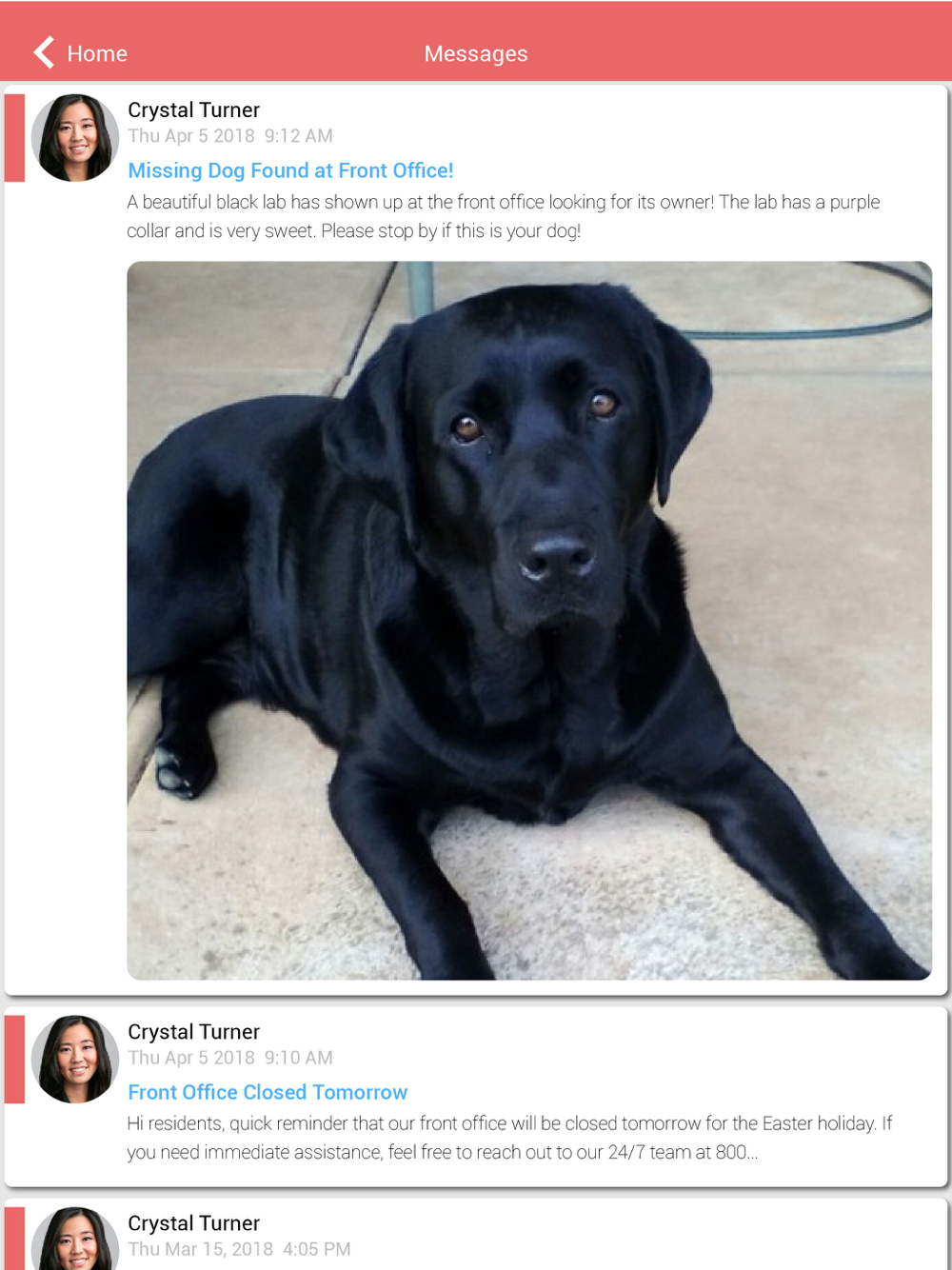 MESSAGES: Receive community updates in real time.