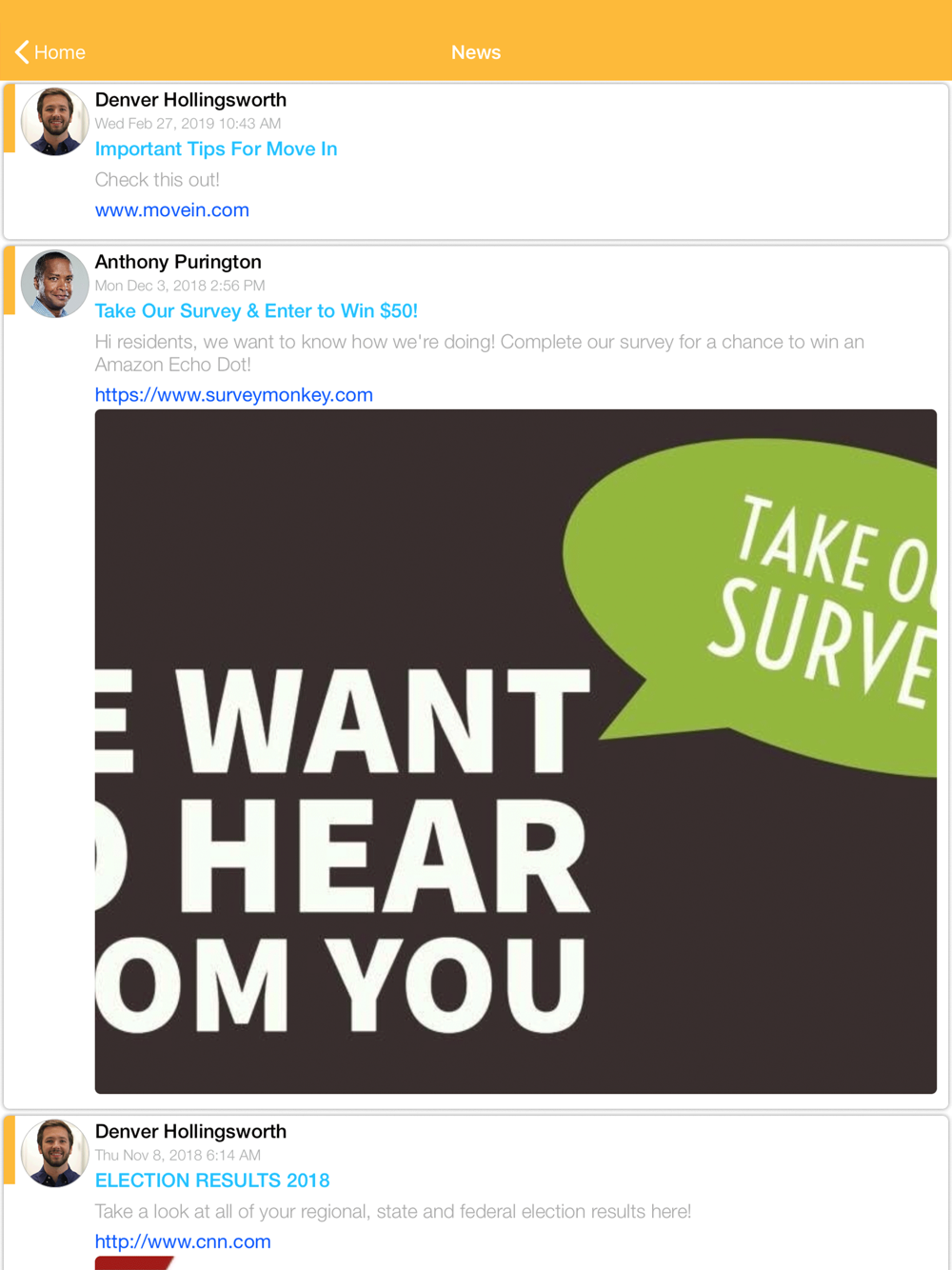 Get updates on upcoming events and urgent messages in real time. Whether you want to know when the next party is, or stay updated on important property information, the app makes it easy to stay in contact and customize the messages that you receive and how you receive them.