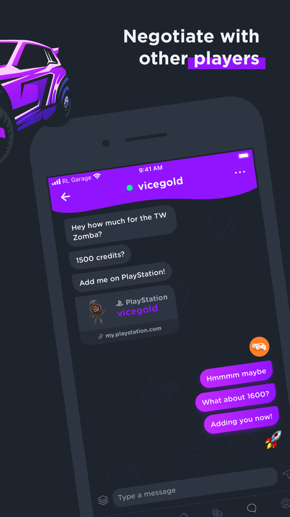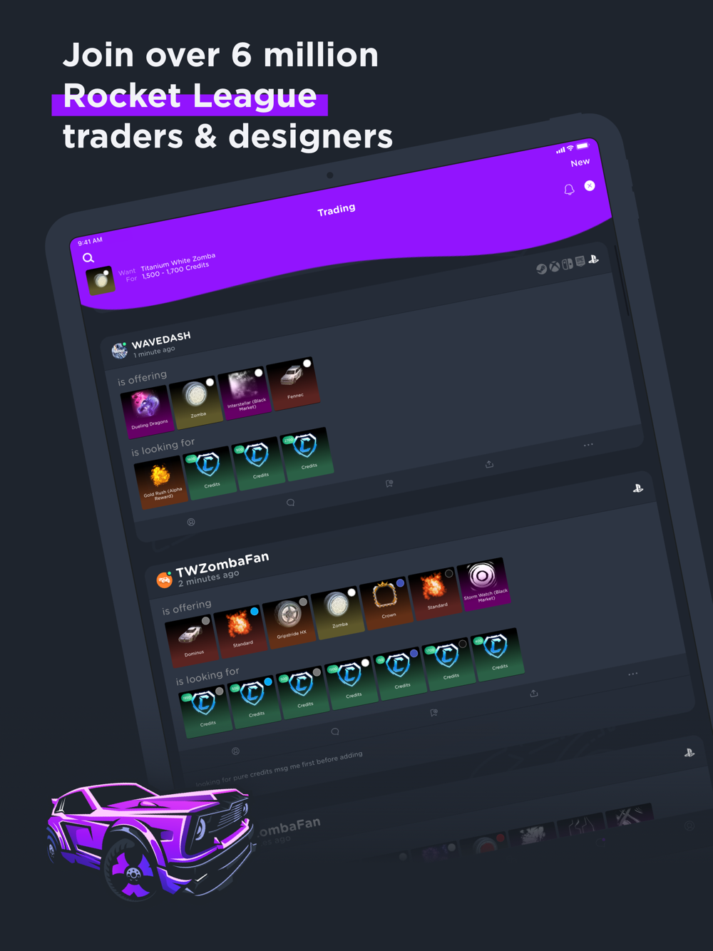 RL Garage brings the biggest Rocket League trading, car design, clip and community platform to your phone! With the iOS app, you can find and post trade offers with ease, and connect with other players.