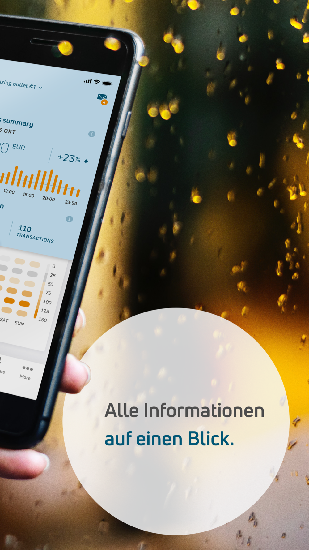 • Business insight widgets wie z. B. eine Heatmap, die anzeigt, wann Ihr Geschäft am besten besucht ist oder die Anzeige des durchschnittlichen Transaktionsbetrags pro Tag