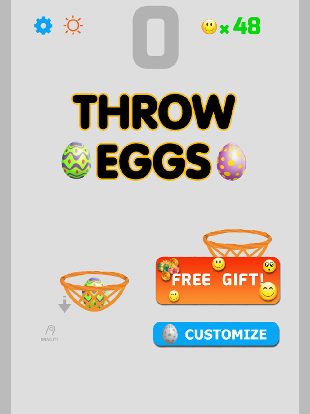 Ready to throw eggs into basket? Grab a egg and start shooting!