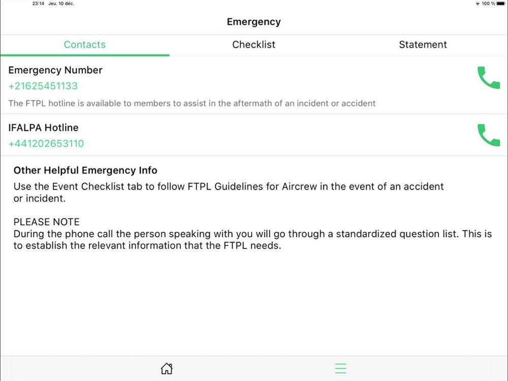 Emergency - Members can contact FTPL by telephone or SMS in the event of an emergency, and follow guidelines for aircrew in a step-by-step process.