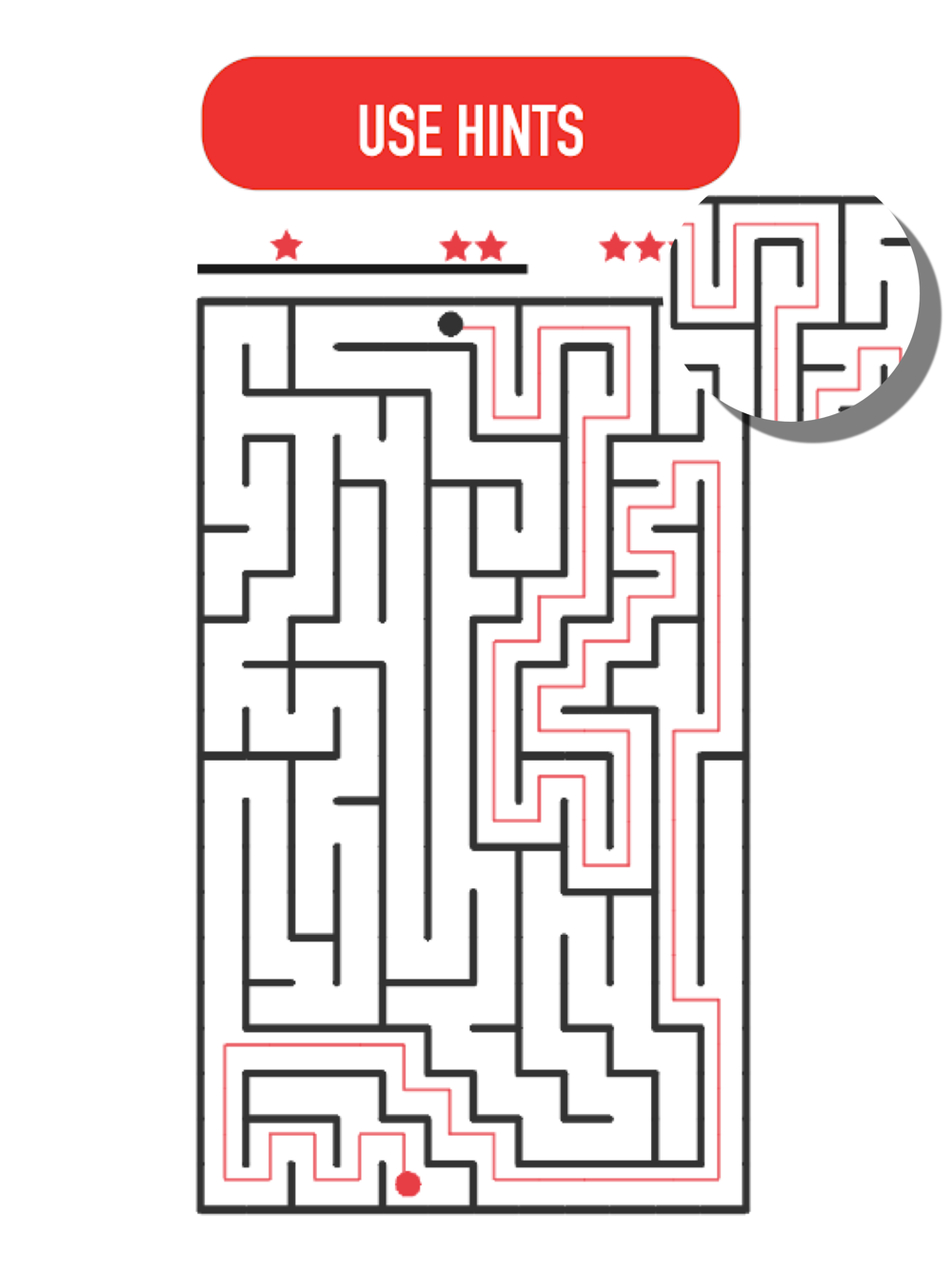 60 Seconds Maze is a classical Maze puzzle game. Drag the red player dot through the maze towards the black dot in 60 seconds or less to complete each level. Because the mazes are generated through our custom algorithm there are unlimited levels to this game. Hints are provided to make things easier, whenever in doubt press the search icon and a hint to the solution of the maze will flash for a few seconds in the screen.