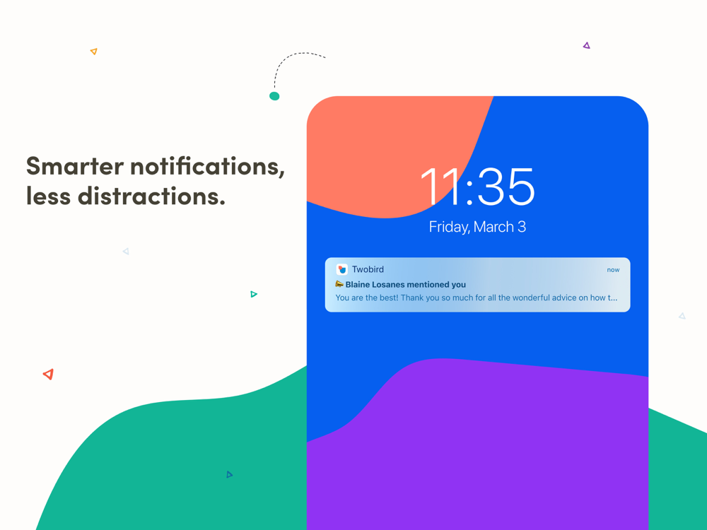 We are working hard to make Twobird your favorite app, and would love to hear your feedback! Follow us @ Twobirdapp on Twitter for our latest news.