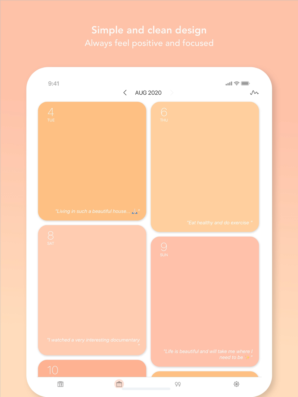 • Calendar ~ See snippets of each day in a beautiful and colorful calendar, and select a day to easily read your past entries.