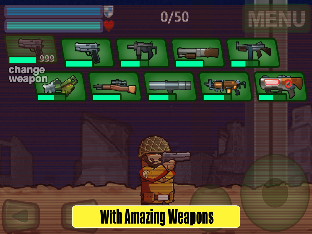 There are Handgun, M3 sub-machine gun, Shotgun, M1921 sub-machine gun, Welder, Sniper Rifle, Bazooka, Laser Gun, Gauss Rifle in this game.