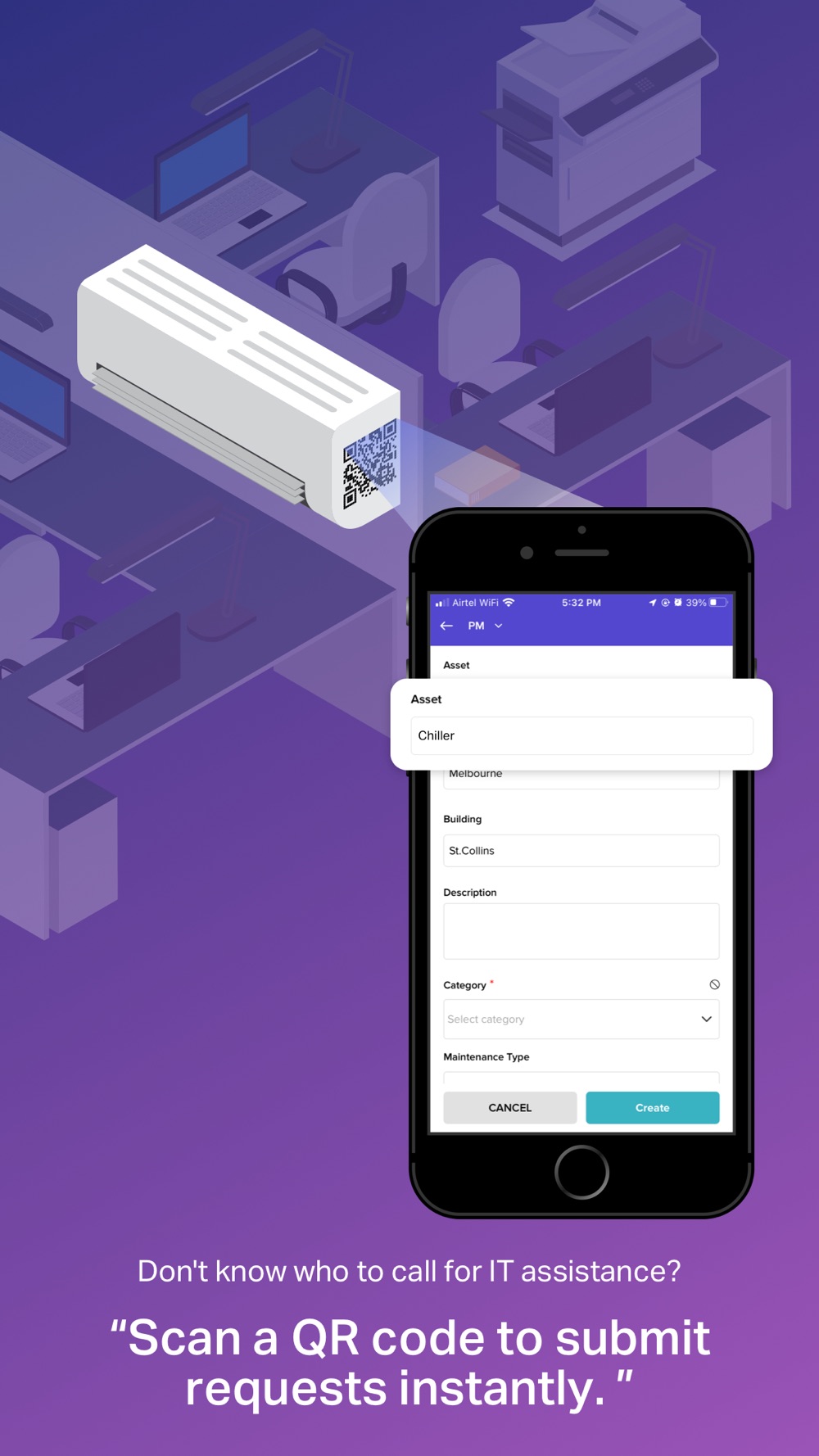 If you are a person who find it a hassle to fill up a form or navigate through a catalogue and pinpoint an issue that is right in front of your eyes, think again. Simply point your camera at a QR code associated with an asset and your request will be created, it's as easy as that! .